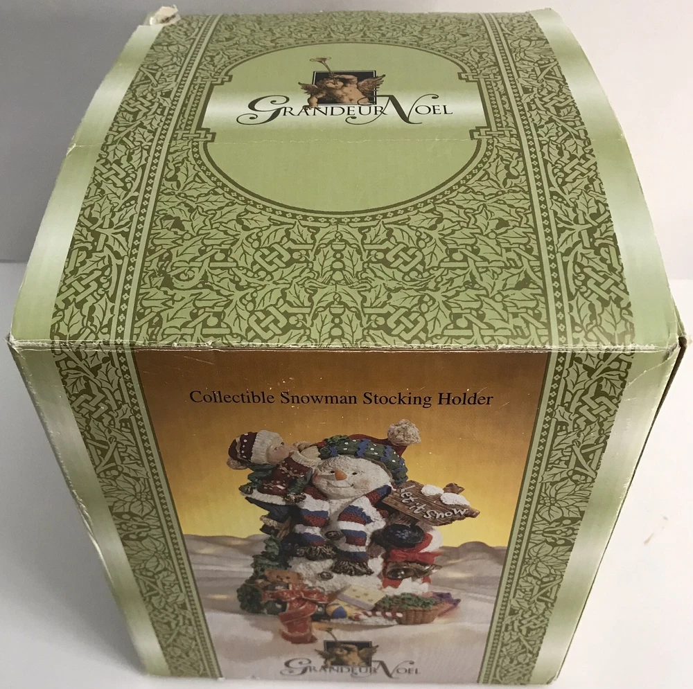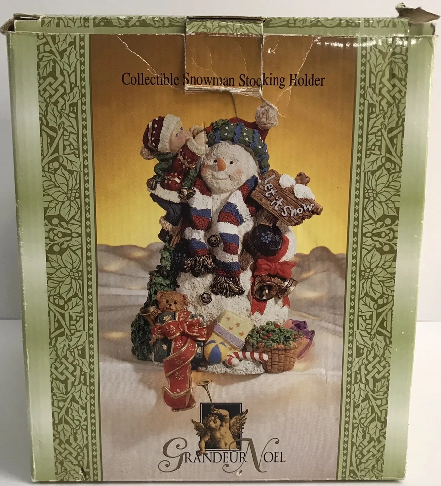 Grandeur Noel Snowman Weighted Christmas Stocking Holder W/ Box Let It Snow Nice condition. Box has some wear from storage. See pictures for details.