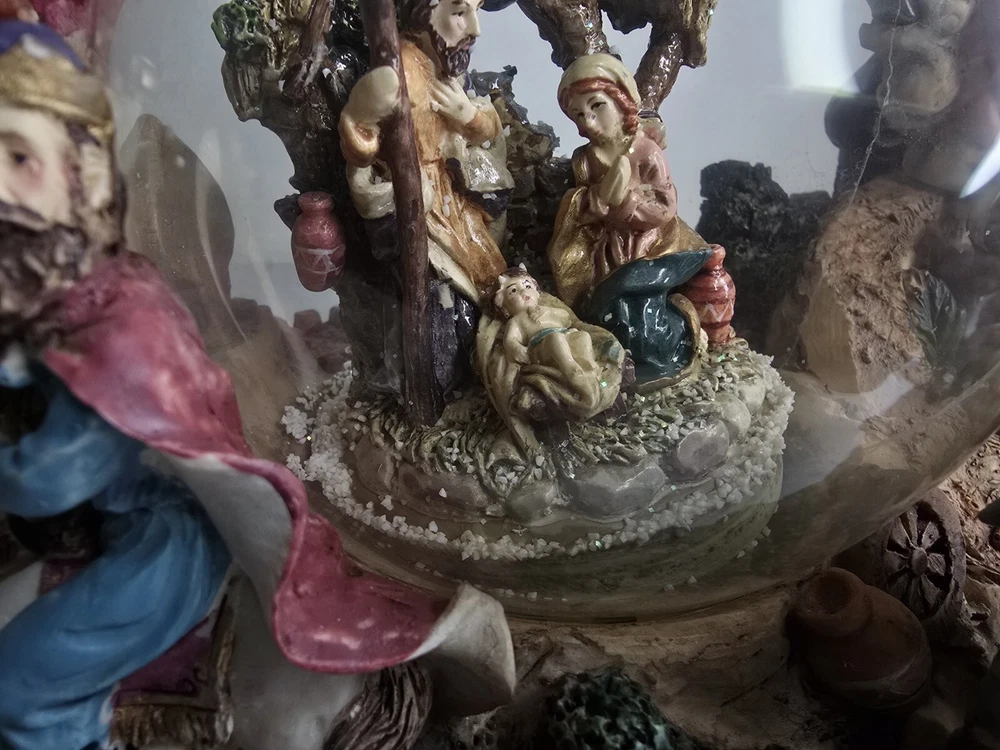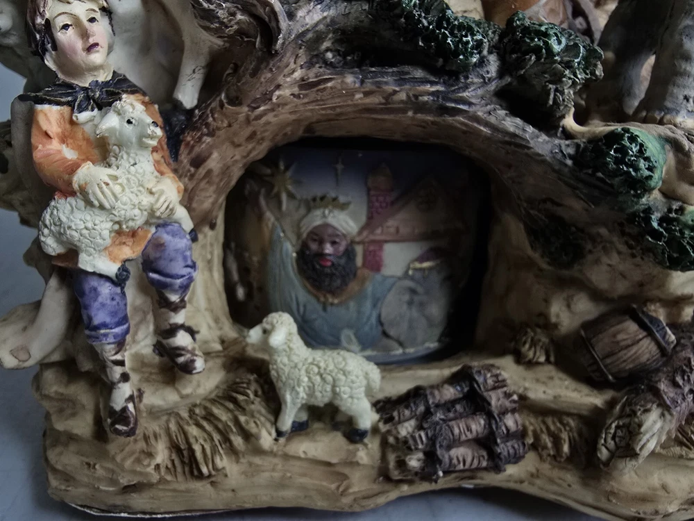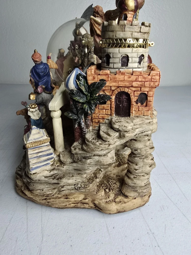 πβ¨ Step Back in Time with this Vintage Grandeur Noel Water Globe! β¨π Get ready to bring some nostalgia to your holiday decor with this Grandeur Noel Vintage 2003 Musical Animated Water Globe Nativity Scene ! Perfect for collectors and holiday enthusiasts, this unique piece is bound to become the centerpiece of your festive celebrations! π π Features that Shine Bright: π Musical Animation : Wind-up mechanism that plays enchanting holiday tunes. πΆ Stunning Details : Intricately designed nativity scene with the Holy Family, wise men, and shepherds, capturing the true essence of Christmas. π Collectible Item : Part of the illustrious Grandeur Noel 2003 Collector's Edition. π Beautiful Craftsmanship : Exquisite details, including a castle, shepherds, and angel Gloria with a banner. Truly a work of art! π¨ π Measurements: π Dimensions: Approximately 10β wide x 10β high x 8β deep to grace any mantel or table. π β¨ Why You'll Love It: β¨ Vintage Charm : The 2003 edition gives a nostalgic vibe that adds a classic touch to your holiday decor. Perfect Gift : Ideal for those who appreciate finely crafted holiday collectibles. π Engaging Animation : The wind-up feature animates the scene and adds a touch of magic to your holiday. π π¦ Condition Report: π¦ This item has had a bit of holiday adventure over the years and shows some wear: Water Leak : The globe has leaked, leaving dry watermarks at the bottom and some rust on the screws. Itβs unclear if this can be refilled or how the leak occurred. π§ Attempts at Access : The white bottom lid was attempted to be removed but is glued on tightly, so it remains in place. π«βοΈ Guarantees : The musical carousel still works like a charm when wound, playing lovely tunes to lift your holiday spirit! πΆ πΈ A Closer Look: πΈ Beautifully detailed nativity scene under a brilliantly arched star. Wise men, shepherds, and animals intricately crafted and painted. Fantastically detailed castles and architectural elements. Baby Jesus, Mary, and Joseph crafted with loving detail within the globe. Angel with a "Gloria" banner, adding heavenly elegance. π π Perfect For... π Holiday decor aficionados looking to make a statement with a classic piece. Vintage item collectors who appreciate the historical charm. Individuals seeking a unique holiday gift with a nostalgic twist. Anyone who loves animated, musical holiday pieces that tell a story! Don't miss out on owning this unique piece of holiday history ! This Grandeur Noel water globe is sure to bring joy and festive cheer to your home. Act fastβbefore it winds up in someone else's Christmas wonderland! βοΈπ Note: Due to its age and vintage status, this item is sold as-is. Please consider the condition details mentioned. ππ Happy Holidays & Merry Collecting! ππ