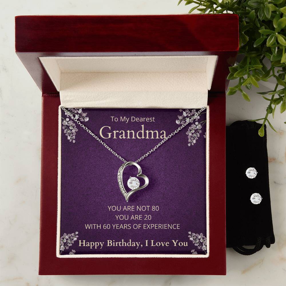 Give your loved one a gift that will make their heart swell! The Forever Love Necklace and Cubic Zirconia Earring Set is sure to do the trick. This necklace and earring pairing provides dazzling sparkle when worn together or separately, and is perfect for any occasion! Do not miss out on this special offering! Necklace Specifications 14k white gold finish 6.5mm round cut cubic zirconia crystal 0.8" (2.2cm) / 0.7" (1.8cm) Adjustable cable chain: 16" - 22" Lobster clasp attachment Earring Specifications 14k white gold finish 6mm round cut cubic zirconia crystals Post style backing Your piece is lovingly packaged in a complimentary soft touch box for easy gifting. Elevate your presentation by upgrading to the mahogany style luxury box, which features a brilliant LED spotlight.