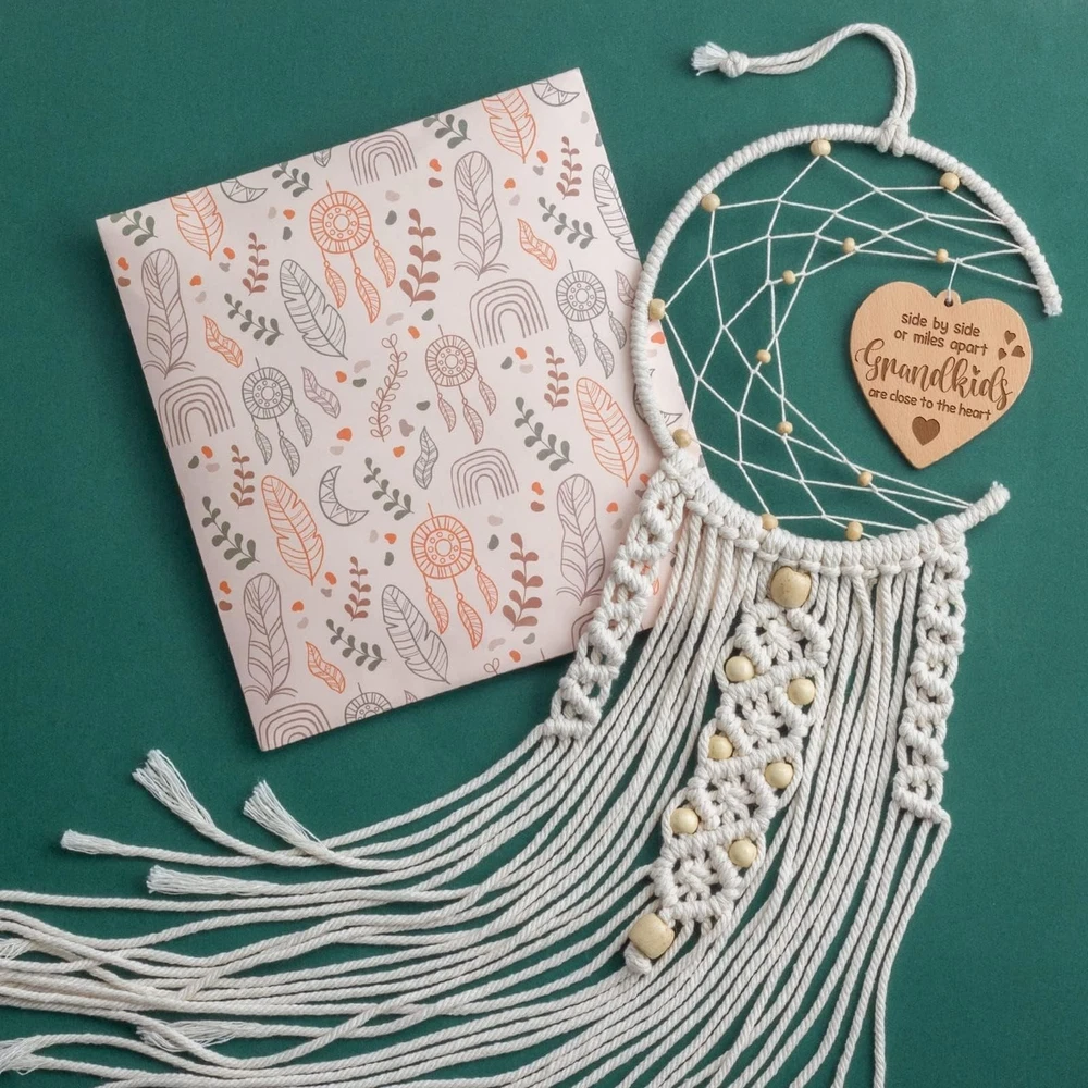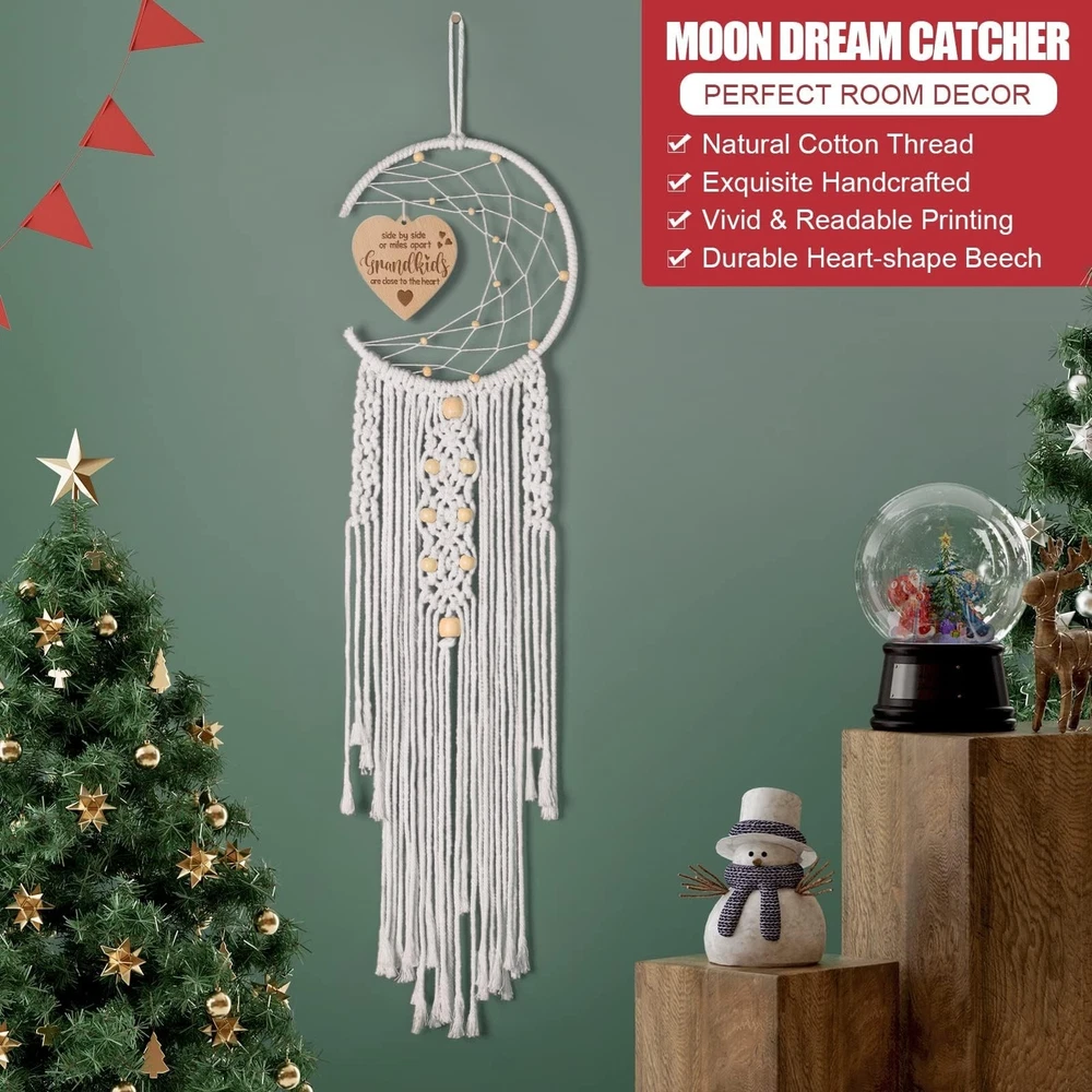 Grandma Valentines Gift, Valentines Day Decoration Gift for Grandma from Granddaughter Grandson Grandkids, Dream Catcher with Heart Pendant Birthday Gift for Grandmother Nana, Boho Home Decor Product Details Size: Grandkids Are Close To The Heart Brand: Trabuono MPN: HK-BMWL-ZH001-01 UPC: Does not apply EAN: Does not apply Package Dimensions: 9.25 x 8.54 x 0.75 inches Item Weight: 6.4 ounces Department: womens Manufacturer: Trabuono Date First Available: March 3, 2022 Perfect Valentine Gift For Grandma: Heart pendant crafted from beech wood with the touching words "Side by side as miles apart Grandkids are close to the heart", Trabuono grandma moon dream catcher is a great mothers day gifts for grandma nana from grandkids to shows how much you love your grandma nana and represents an unbreakable bond between your souls. A personalized grandmother mothers day gifts birthday gifts to your beloved grandma, nana, granny, mimi, gigi or meme and so on A Meaningful Grandma Valentines Day Gifts : Dream catcher Valentine gifts has the meaning of praying for peace and bringing good luck. Hanging the dream catcher in your grandmas bedroom, It will catch bad dreams and drive away nightmares, bringing your grandma nana with good luck and sweet dreams. A meaningful gifts to show your care and love to your grandma on Christmas, Birthdays, Mother's Day, Thanksgiving Day, Christmas, Valentines Day, anniversary, or as a thoughtful thank you present Wall Art Decor: 100% Handmade macrame work on a half moon, heart or circle shape presents a unique design with a small hanging decoration. It's an attractive wall hanging tapestry decoration and suit for any modern interiors concepts: bohemian, Scandinavian, rustic, contemporary and others. With this macrame wall hanging to your grandma home, not only can add a bohemian vibe to her room but also will warm up her space. It is great for a bedroom, living area, workspace, farmhouse, etc Premium Materials: Top Valentine Gifts for Grandma - Trabuono gifts for grandma from granddaughter grandson dream catcher crafted from 100% natural cotton thread & the heart-shaped board is made of thicken beech wood, which printing is vivid and clear, no cutting words for easy reading. Our dream catchers Grandma gifts from grandchildren are carefully handcrafted to ensure strength & durability and the color will never fade, they can last the whole season and continually be used next year Satisfaction Guarantee: No need to repackage! Elegant gift package make it as gorgeous Valentine gifts for grandma from grandchildren. It's an excellent Christmas home decor, Christmas Party decor, Christmas Eve Decor, New Year Decor. Your grandma will be surprise with this funny Christmas dream cattcher! Our team offers superior customer service, high-quality materials. If you are not satisfied with our moon dream catcher wall decor nana gifts for christmas, feel free to send us your issues