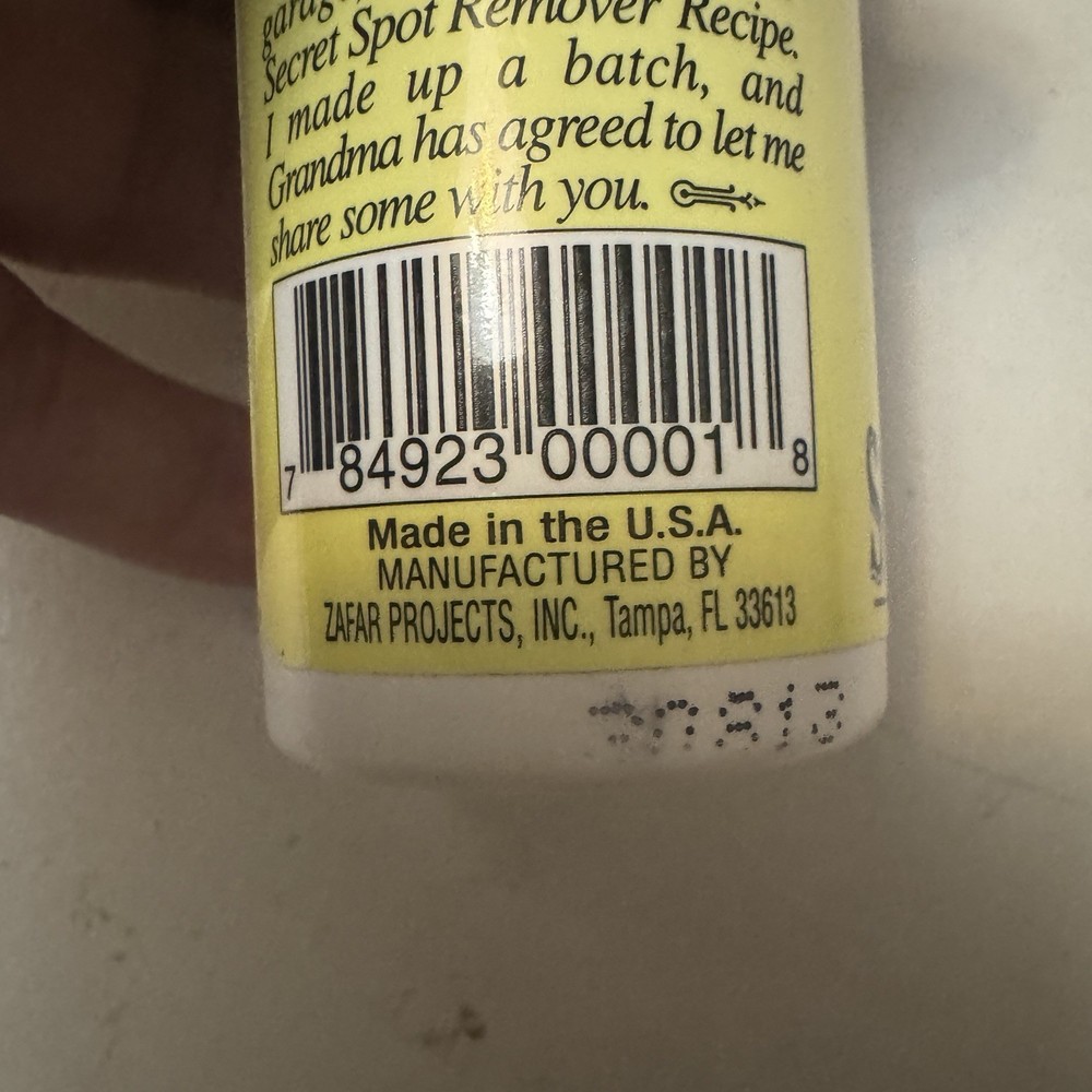 UPC: 784923000018 Type: Spot Remover Brand: Grandma's Secert gtin13: 784923000018 Model: Grandma 's Secret