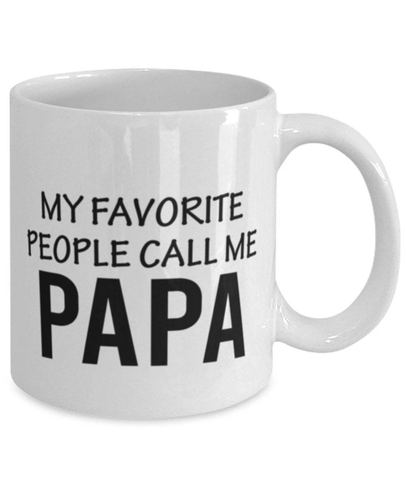 Grandpa Funny Coffee Mug My Favorite People Call Me Papa Gift For Him Best Dad Product Details.. This high quality 11oz. ceramic white mug has a premium hard coat that provides crisp and vibrant color reproduction sure to last for years. Perfect for all hot & cold beverages. The highest quality printing possible is used. It will never fade no matter how many times you wash it. Material: 100% Ceramic. Print both sides. Dishwasher and Microwave Safe. High Gloss + Premium White Finish. Printed in the U.S.A. Personalized & Custom. We support personalized and custom mug to add custom, when placing an order, you can add notes to the "order note" in shipping address section. Also you can contact us directly via message. Shipping Info. Ready to ship in 1 to 2 business days, All products are made-to-order and proudly printed in the United States. Shipped by USPS and DHL, You will receive your order in 5-7 days. Replace & Refund. All products are defective during shipping broken, chipped will be replaced free of charge. You are not satisfied with the product, we will refund 100% money to you. If any other issues arise, please do not hesitate to message, we would be more than happy to assist you.