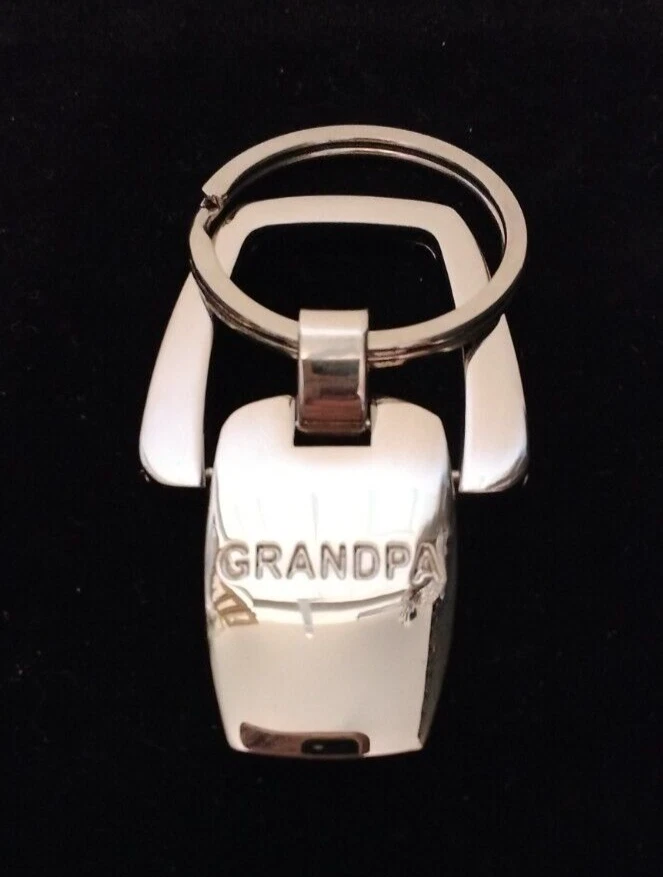 New With Gift Box Grandpa Engraved Medallion Key Ring Shiny Silver Tone Metal Medallion Moves In Motion Nice Solid As Seen In Photos From A Smoke Free Home