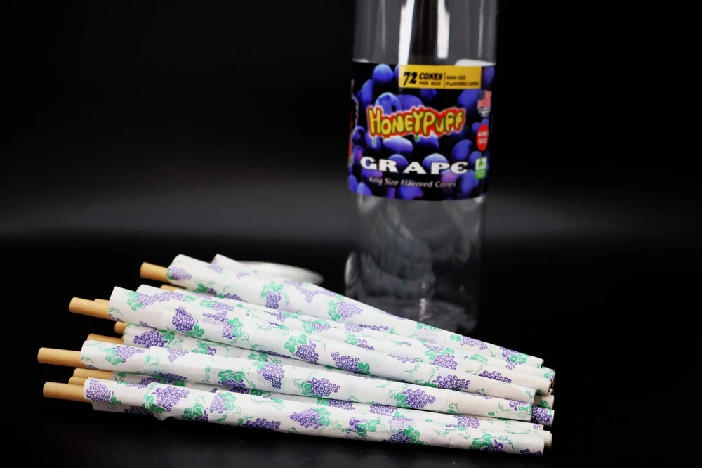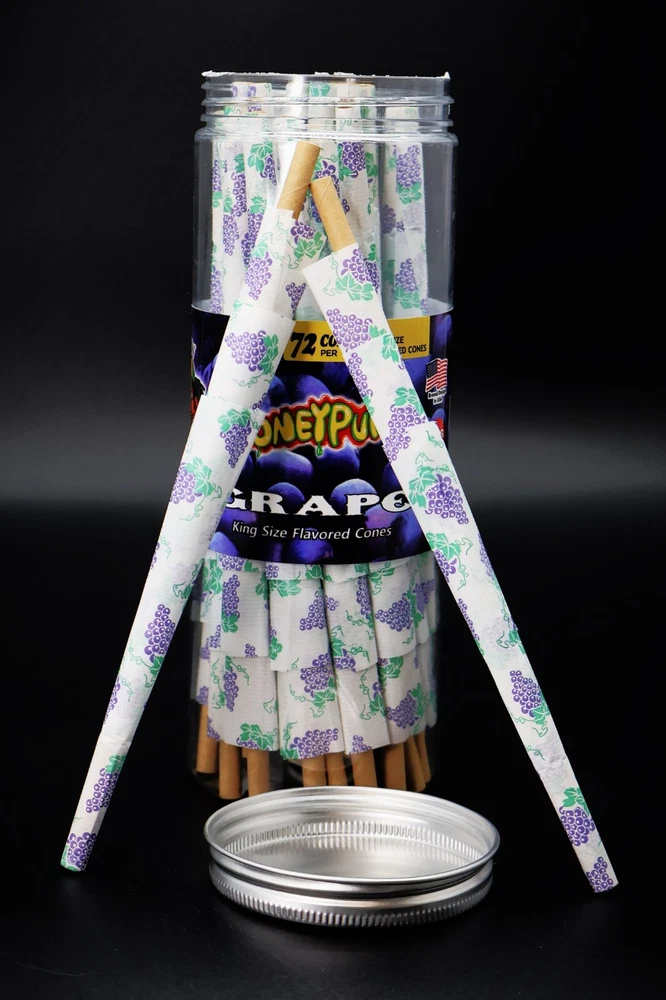 Use: For Smoking Tobacco Material: High Quality Fiber Paper The Quantity of Plastic Tube: 72Cone/Can Country/Region of Manufacture: United States The Length of Cigarette Cone: 110 MM / 4.33 Inches Flavor: Grape Flavored Brand: Novelty Nest Modified Item: No The Length of Plastic Doob: 180 MM / 7.09 Inches