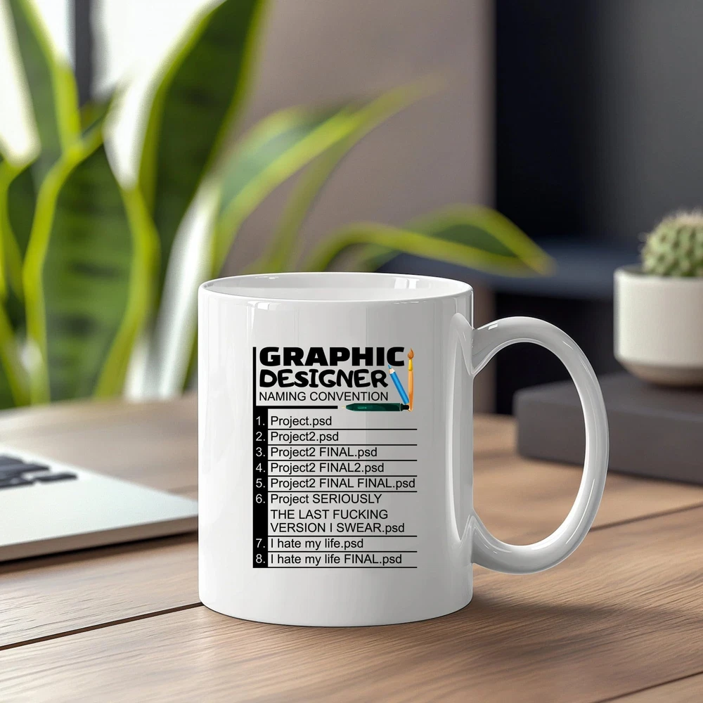 Start your day with your every morning brewed coffee, tea or any favorite drinks in this novelty mug. This unique mug can be used at school, libraries, reading rooms, workplaces, home. This high quality 11oz. ceramic white mug has a premium hard coat that provides crisp and vibrant color reproduction sure to last for years. Perfect for all hot and cold beverages. THERE'S ALWAYS ONE MORE 'FINAL' VERSION TO GO: Are you a graphic designer who knows the pain of endless edits and file versions? Do you find yourself constantly renaming your files like 'final final' or 'really final this time'? Then this mug is for you! A perfect gift for artists who know all too well the struggle of editing and naming their files until the project is just right. So, let everyone know that when it comes to naming conventions, you're the king/queen of the endless iterations! PREMIUM COFFEE MUG: This high-quality ceramic mug has a premium hard coat that provides crisp and vibrant color reproduction sure to last for years. Printed on both sides for either left or right-handed person so the awesome message and art will be visible. High-gloss and has a premium finish that can make you enjoy your drink more. Can also be used as pen holders on your office work table, planter for your kitchen herb, jewelry holder, or serving your favorite dessert. RELATABLE HUMOROUS QUOTE: Why settle for a boring old mug when you can have this one-of-a-kind drinkware on your dining, kitchen, or work table? Bring a smile to your loved ones' faces with this hilarious mug. Featuring a witty and relatable quote, this mug is sure to brighten anyone's day. Whether you're enjoying your morning coffee or taking a well-deserved break at work, this mug is the perfect pick-me-up. A conversation starter, it's also a surefire way to lift anyone's mood. HILARIOUS AND QUIRKY GIFT: It's not just the functional aspects that make this mug stand out. Its humorous design is what makes it a truly special and memorable gift. Whether it's to celebrate birthdays, anniversaries, graduation, holidays, retirement, Christmas, or any special milestone that occurs in life, this mug is sure to bring a smile to their face and some laughter to their day. The perfect present for anyone who loves a good laugh! DISHWASHER AND MICROWAVE SAFE: These fantastic drinking mugs can go straight in the dishwasher, all day every day, meaning it can save you time, and be more hygienic. Perfect for your favorite hot or cold beverages. Easily reheat that coffee or tea you forgot to drink right away because it is microwave safe. Saves you time, is very convenient, and is perfect for your busy lifestyle.