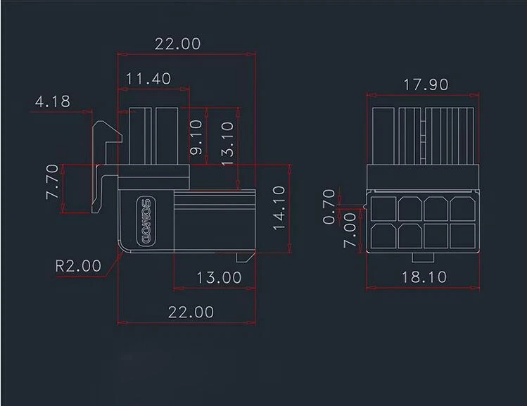 Graphics Card 90 Degree Elbow 8-pin Connector Positive & Reverse Bending Parts