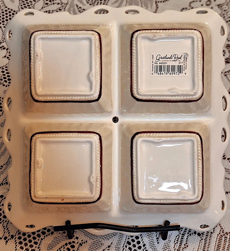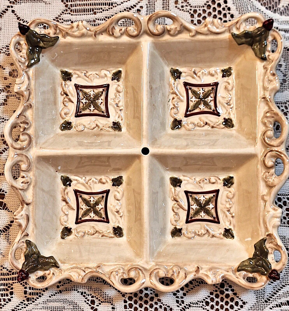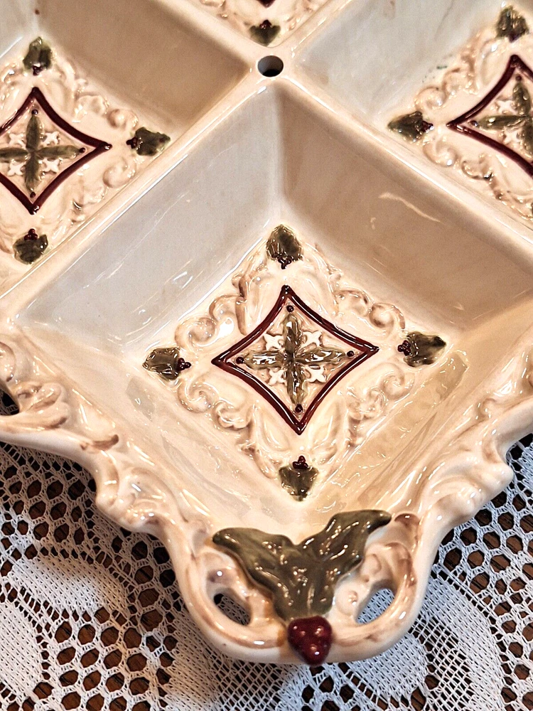Grasslands Road Serving Dish Christmas Holly Ceramic 4 section Relish Dish