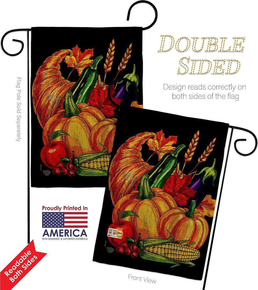 Grateful Cornucopia Burlap Garden Flag Pack for Fall and Thanksgiving Decor