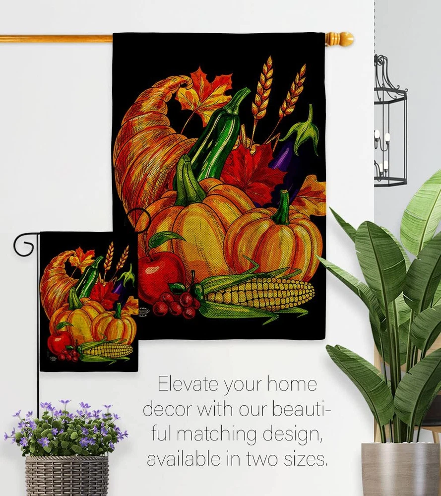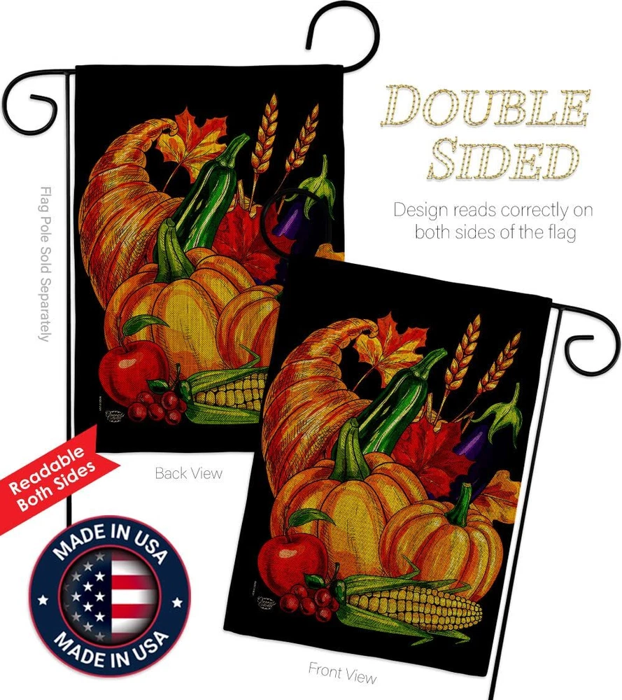 Thanksgiving Beautiful Mini Garden Flag with Garden Banner Pole Stand - Complete Set with Garden Pole - 16" x 40" Power Coated Metal Flag StandOrnament Collection have variety of Garden Flag Set for all occasions. Uniquely design for hanging indoor or outdoor use. We are committed to offering you exceptional values. Our customers enjoy displaying our Garden Flag Set for longer periods. Specification: Theme: Thanksgiving Size: Garden Flag Set 13" x 18.5" Size: Metal Garden Pole Print: Double-Sided Readable: Readable Both Sides Material: Weather Resistant Double Burlap Stitching: Double Stitched Display: Vertical Hang Type: Sleeve Artist: © Ava Storey Special Features: Origin: Made In USAPackage Include: 1 pc x Mini Garden Flag 13" x 18.5" 1 pc x Metal Yard Banner HardwareFor more than a decade, we’ve been dedicated to manufacturing flags with no comparison in quality and beautiful designs. Our flags are made with our Guard material that is soft to the touch and designs can be read correctly on the flag. A feature that our customers will love. We are committed to using eco-friendly inks that won’t leave a foot print in our environment. MPN: OC-TG-GS-192655-IP-DB-D-US21-OC 92655 92655 PROUDLY Made In USA - Package And Product Designed In California PURCHASE WITH CONFIDENCE - From 's US Authorized Resellers MADE OF DURABLE - 100% Thick Double Burlap Fabric construction helps resist the wear and tear from frequent use TEXT READABLE BOTH SIDES - Garden Flag Set Double-Sided Print DURABLE FLAG - Double stitching panels on multiple rows and high quality Sleeve to provide lasting strength VIBRANT COLORS - With UV-Resistant Maintains Its Colors All Season Long FEATURES - Free Garden Flag Hardware Included!