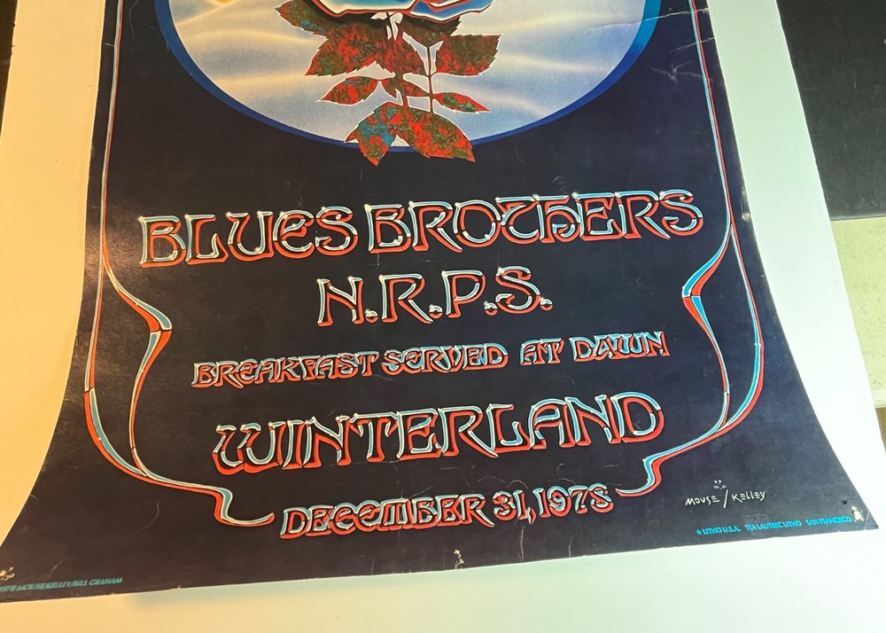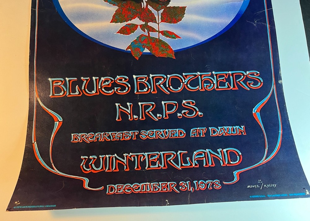 Bill Graham's Grateful Dead New Years Eve 1978 Winterland Poster This is a Bill Graham's Grateful Dead 1978 New Years Eve Winterland Poster. It is a 100% original and I believe the 1st printing?? The poster measures 28" x 19". It has been tacked up as can be seen by the tack holes in each corner. It also has some bends and folds. I tried to take pictures that showed the condition. Most of my listings come from defaulted storage units. This means I do not know the history of the item. Please feel free to ask questions before bidding. The poster will be rolled up and mailed in a Priority Tube mailer. I mail to the US and Canada ONLY. Thank you for looking.