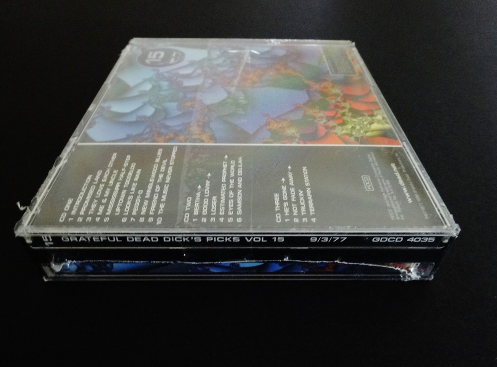 Grateful Dead : Dick's Picks 15 Volume Fifteen : September 3, 1977 ( 9/3/1977 ) - Raceway Park - Englishtown, New Jersey ( NJ ) : 3 CD : 1999 (1977/1999) Grateful Dead Productions, Inc. ( GDP ) - GDCD 4035 : Original ! First ( 1st ! ) Printing ! : Brand New / Factory Sealed ! : Out of Print !! ... & Very-Rare !!!!! Dick's 1st Posthumous Release ! & One of the Very-Best !! " Dick's Picks " Ever !!!!! ... The " Original ! " GDP, Inc. First ( 1st! ) Printing -- GDCD 4035 !!! - Brand New / Factory-Sealed !!!!! The Grateful Dead treating a Massive-Crowd ! in the New York Area to an Exceptional Concert ! on the 1977 " Terrapin Station " Tour !!!!! Englishtown '77. Simply mention " Englishtown " in the Deadhead Universe & People-Listen, because they know just exactly what You are Saying !!! This Monumental ! Dick's Picks Volume 15 release marks the 3rd return from the fantastic year of 1977 Grateful Dead. The sad part however, is that this is the 1st ' Posthumous Release ' with Dick Latvala " Keeper of the Vault " passing in 1999 and joining Pigpen, Keith, Brent & Jerry. Very sad for us, but maybe not so bad for them since they probably have one heck of a band up there - with Dick's still rollin' the reels ! The inside Liner Notes feature a photo of the completely massive Englishtown crowd ( looks like 100,000's + of Dead Fans ?!! ) and right next to it lies the following message: "People of Earth.... Greetings from the great beyond. I am contacting you at this time to assure you that all is well and to let you know that Dick's Picks shall continue in my absence just as before. My plans for future releases are well known to my teammates and they have sworn with their blood to remain true to the cause. I hope this release will alleviate any doubts concerning my posthumous powers." -- And for the years to come, Dick's teammates did indeed keep this promise - all the way through Dick's Picks # 36 ( released in 2005 ). So, I'm not entirely certain if this release was initially " planned " as DP # 15 ?, or if it was perhaps pulled out of order and numbered / released ( impromptu ) as # 15 in Mr. Latvala's honor ?? The reason I puzzle this quandary, is because 9/3/77 is an UNBELIEVABLE !!! Heater - a Stellar-throughout Cosmic Chunk of Grateful Dead ! I mean just look at the size of the crowd they are playing to -- totally amazing ! This is a serious Rock-Concert situation, in a serious Rock-Concert region, right at the tail-end of the Rock-Concert Golden Era : the Late-70's !!! There are as many rockers ( i.e. Promised Land - Minglewood - Music ), as there are subtle-sweet tunes ( T.L.E.O. - Peggy-O - F.O.T.D. ) in the 1st Set with exceptional music & vocal efforts. The Music Never Stopped is indeed awesome & powerful ! Set 2 offers a " Rock 'n Roll " History style delivery by the Dead : Bertha > Good Lovin' offers a memorable vocal rap by Weir on the back end while trading with Donna & the Boys. Jerry puts his trademark stamp on Loser ! For the back-end of the 2nd Set ( CD-3 ), you'd just as well go put on your seat-belt because you are in for a ride ..... He's Gone > NFA ( one of the best, seriously. ) -- ( it should be noted that Garcia puts the hammer-down on the MXR Distortion + pedal ( chords & leads !! ), and to this day I cannot listen to this without getting goose-bumps -- it'll cook your speaker cones for dinner ! ) > Truckin' ( WoW ! ). Then Phil comes out and delivers an ad for the Deadheads to Go & Buy " Terrapin Station " - how awesome, as those were certainly the days. Note : In an effort to honor Phil's request, let's see ?? OK, I've purchased " Terrapin " on vinyl, cassette, CD, CD Again, CD Remaster. Yes, he is right -- it is that important. Then they step up to the mats, and deliver a wonderful & heartfelt version of " Terrapin " as an Encore for the New York Metro die-hard fans. Earth to Dick ... you have been honored in this release. But wait, YOU ! picked it -- so you actually honored Us ! in turn, yet once again ?!! And for that ( & this ! ) we say " Thanks Dick !!!! ". TRACK LISTING >>> Grateful Dead recorded ' Live ' at Raceway Park in Englishtown, New Jersey on September 3rd, 1977 ( 9/3/1977 ) : CD 1 : Introduction Promised Land They Love Each Other Me & My Uncle Mississippi Half-Step Uptown Toodeloo Looks Like Rain Peggy-O New Minglewood Blues Friend Of The Devil The Music Never Stopped CD 2 : Bertha > Good Lovin' > Loser Estimated Prophet > Eyes Of The World Samson And Delilah CD 3 : He's Gone > Not Fade Away > Truckin' Terrapin Station ( Encore ) * Item Condition * : This Very-Rare !!! Out of Print ( 1999 GDP release ( GDCD Original 1st Printing ! ) ) Grateful Dead Dick's Picks 15 ( 9/3/77 Raceway Park, Englishtown, NJ ) 3-CD Set ( 1999 GDP, Inc. / Original 1st Printing ! / GDCD 4035 ) is Brand New / Factory-Sealed ! * Please Note * : There is some light surface wear, and very light severing on the factory-sealing shrink wrap (please see photos). There is also a hairline crack ( approximately 1" ) on the CD Case back panel - located on the bottom right corner area (please see photos/close-up photo #12). A brand new pair of CD Jewel Case plastic panels will be included which can be easily inserted ( snapped-in ), so this brand new Dick's Picks #15 3-CD Set will be in brand new perfect-mint condition for your CD Collection. This CD Set has been carefully stored next to other CD Cases in my professional CD rack. Please see all photos provided. Photos included are of the actual item you will receive. Englishtown '77 !!! Enjoy !!!!! Please ask any questions before bidding/buying & Best of Luck ! ( also ... please feel free to click the 'see other items' button above to check out my other related live listings - Thanks ! ) U.S. & International buyers welcome (additional shipping charges & delivery time will apply for international destinations). Shipping charges include delivery confirmation on every item. Returns accepted within 14 days of purchase if item is returned brand ne