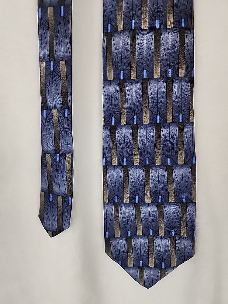 This unique Grateful Dead neck tie is a must-have for any hippie or collector enthusiast. Made of 100% silk and featuring a geometric pattern in gray, gold, and blue, this tie is a classic addition to any wardrobe. The tie's logo accents and vintage design add a touch of American music history to any outfit. Measuring 57-60 inches in length and 4 inches wide, this tie is perfect for any occasion. Imported from the United States, this designer piece is sure to turn heads. Don't miss your chance to add this Grateful Dead neck tie to your collection. Item is in Pre-owned condition and may show signs of wear. See pics for details. Email with any questions. Thanks for looking!