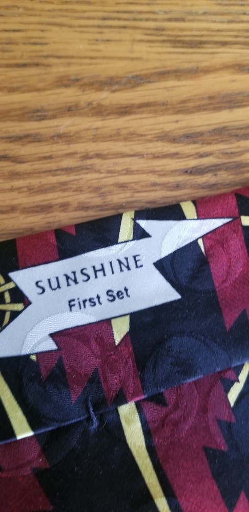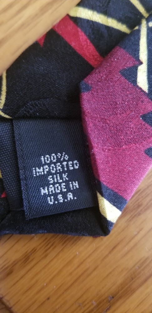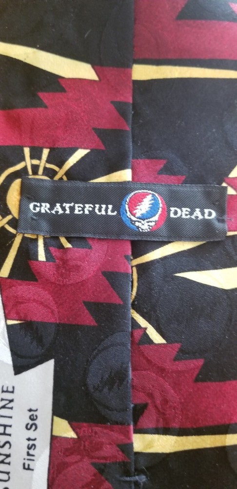 This Grateful Dead Men's Silk Novelty Neck Tie features a classic design with a vibrant red, black, and yellow color scheme. Made from 100% silk fabric in the United States, this vintage tie showcases a music-themed pattern that is perfect for fans of the Grateful Dead. The tie is wide and falls within the classic length range, making it a stylish accessory for men who appreciate designer items with a touch of nostalgia.