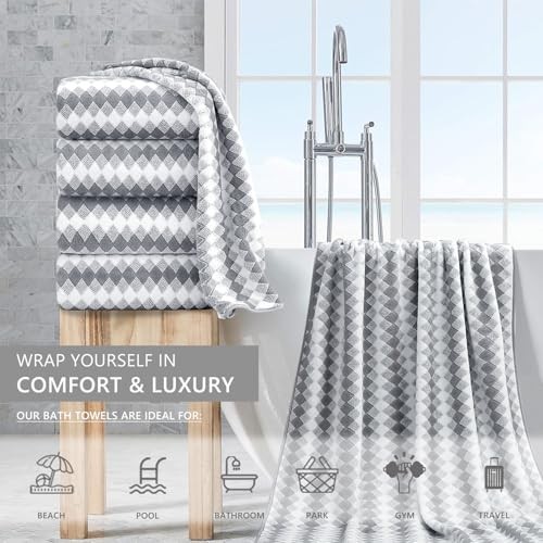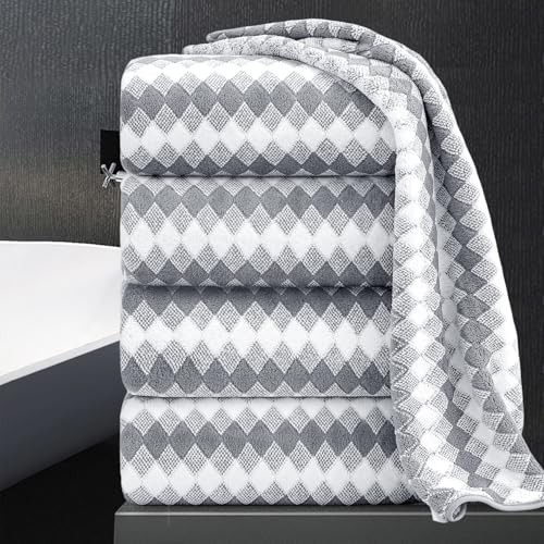 Microfiber 4 Pack Bath Towel Set, Lightweight and 4 Piece Bath Towels Cream