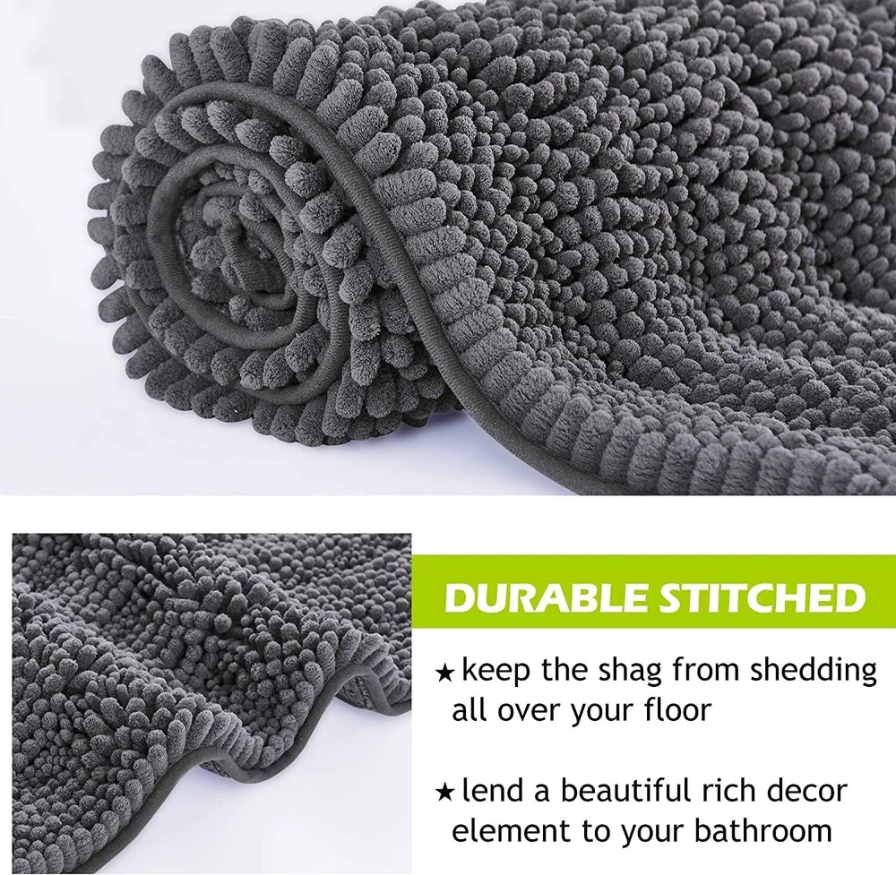 Gray Bathroom Rug - Soft Large Bathroom Rug, 60 in. x 24 in. Absorbent Bath Mat
