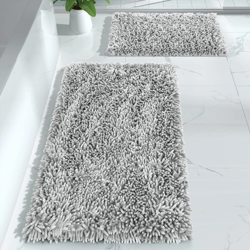 Super Soft Fluffy: Yimobra chenille bathroom rug sets has a high and shiny pile that not only looks luxurious but feels like too. Fluffy heavy texture Bath rugs so cozy and snuggly, Please looking forward to the surprise, when you get out of the bath or shower! your feet will feel dry and cozy as soon as you stepping on Quick Water Absorption: Thick bathroom rugs and mats sets soak up the water while you're stepping out of the bath and keep your floor dry rely on built-in memory foam. Super absorbent rug is to dry quickly and keep floor cleanly Non Slip & Sturdy Backing: Non-slip bathroom rugs mats with extremely sturdy backing. Upgrade dense anti slip dots on the backing of the rug provide a strong grip, the non-slip mat on the back is as tightly as an eagle's paws are catching a chick Machine Washable: Simply throw the bath rug in your washing machine on cold with gentle detergent. hang to dry or air dry flat after washing, the machine washable rug will reborn as new, And the soft chenille bath mat shag will not be out of shape even after long use Versatile Use: Several color & size provided, Bath mat sets fits your bathroom perfectly. Suitable for sauna, shower, gym for bathroom, bedroom, dining room, living room, dressing table and so on. The luxurious appearance and unique luster brings high-level beauty to your room, and integrates the quality of life into the bits and pieces around you Product Description 100% Luxury Soft Chenille Well Water Absorption Ymibora Bathroom Rug Different From Other Brands Our Chenille bathroom mat is more thick and luxurious than other brands Our Chenille bathroom mat will change colors according to different light angles Bathroom Rugs for Bathtub Rugs for Laundry Room Color and Size