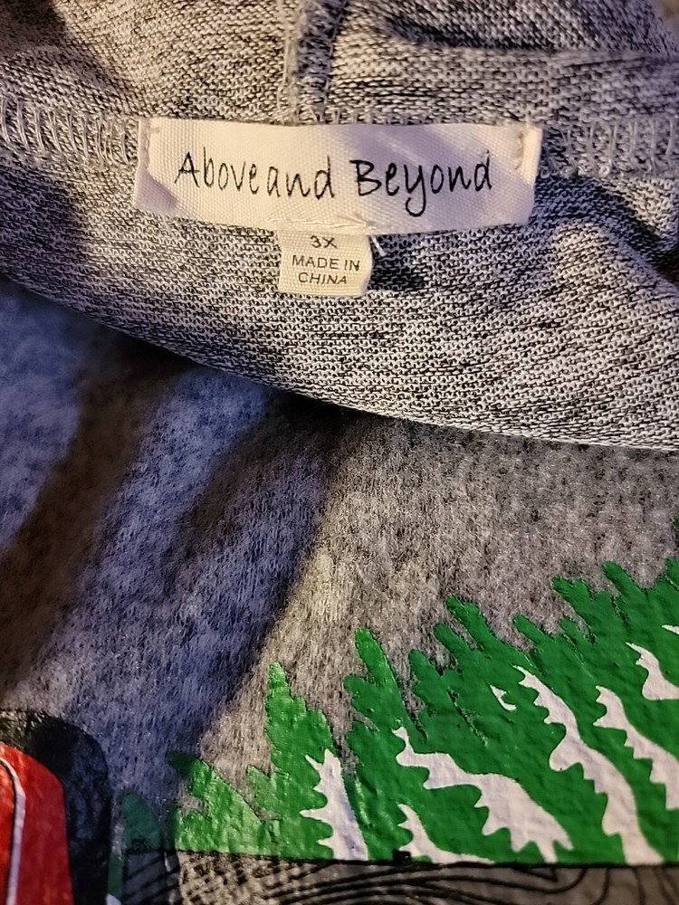 Neckline: V-Neck Department: Women Fabric Type: Fleece Fit: Regular Character Family: none Character: none Product Line: none Sleeve Length: Long Sleeve Size: 3XL Theme: Christmas Garment Care: Machine Washable Vintage: No Pattern: truck Color: Gray Style: Pullover Performance/Activity: Beach, Driving, Riding, Walking Brand: above and beyond Size Type: Regular Material: Polyester, Nylon, Spandex Chest Size: 48 in Lining Material: none Country/Region of Manufacture: China Closure: Pullover Season: Winter, Spring, Fall Occasion: Activewear Personalize: No Type: Hoodie Features: Easy Care, Hooded, Oversized Accents: none