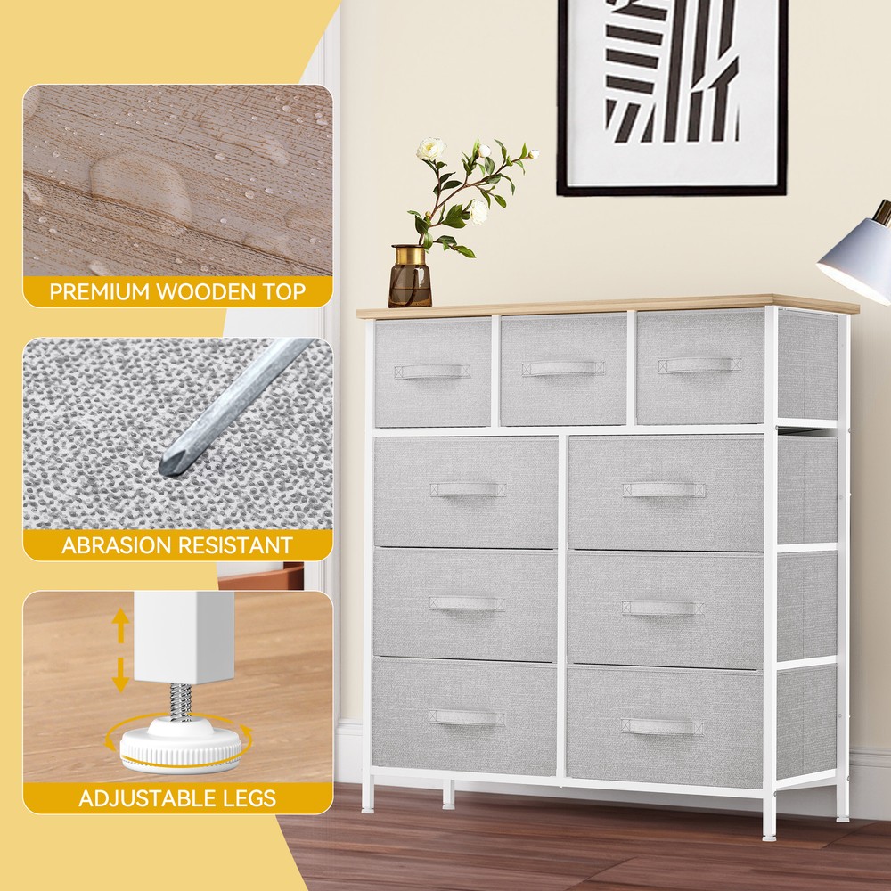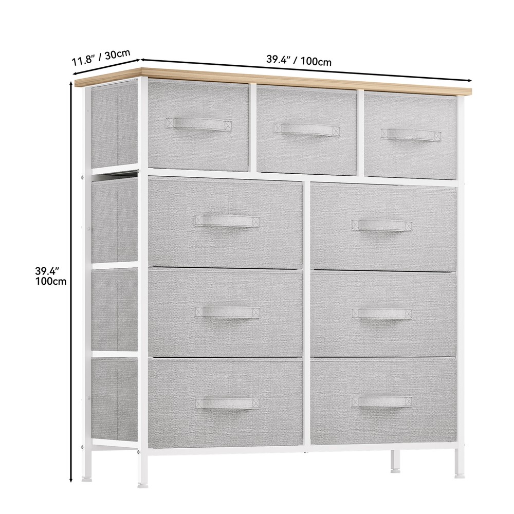 TAUS 10-Drawer Fabric Dresser Storage Organizer in Brown for Hallway or Bedroom