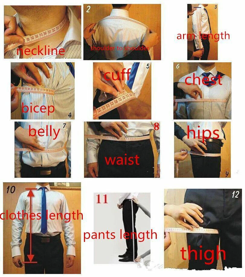 Note: 1. Our products(suit, jacket, pants, shirt and so on) does not include any accessories such as flower, hat, crutch etc(if these accessories show on the pictures). 2. Colors may vary between different CRT and LCD screens. We can not guarantee that the colors of our products is exactly the same with the pictures you see. 3. Please give us your exact size and color, when you place the order. We are glad to process return when necessary, in order to make sure the suit fits you well. 4. Before ordering, please read all listing carefully and ask all your questions. About: Supply men's suit, custom made suits, shirts etc.. Different sizes and multiple colors are available High quality Competitive price directly from factory quotation Customized product is welcomed. About Feedback: A- We do our best to make your online purchase as pleasant as possible.If you have any question,please do not hesitate to contact us.Because we truly want every customer to be a satisfied customer! B- It would be highly appreciated if you could leave us a pos i tive feedback,which must be a great encouragement for us. Specially We can also custom suits for you according to the pictures or links that you provide,so,if you have any items which you love,please feel free to provide it to me,thank you. Manufacture time:10-15 days,if you need it urgently,please feel free to contact me.Fast order and fast shipment can be prepared according to your situation.