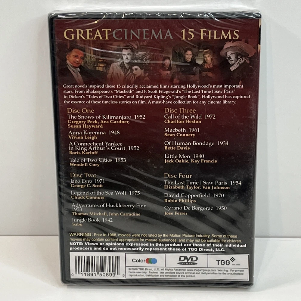 Great Cinema: 15 Films DVDs Call Of The Wild, Macbeth, Jane Eyre, Jungle Book, and more. Condition is brand new sealed. Shipped USPS First class Mail.