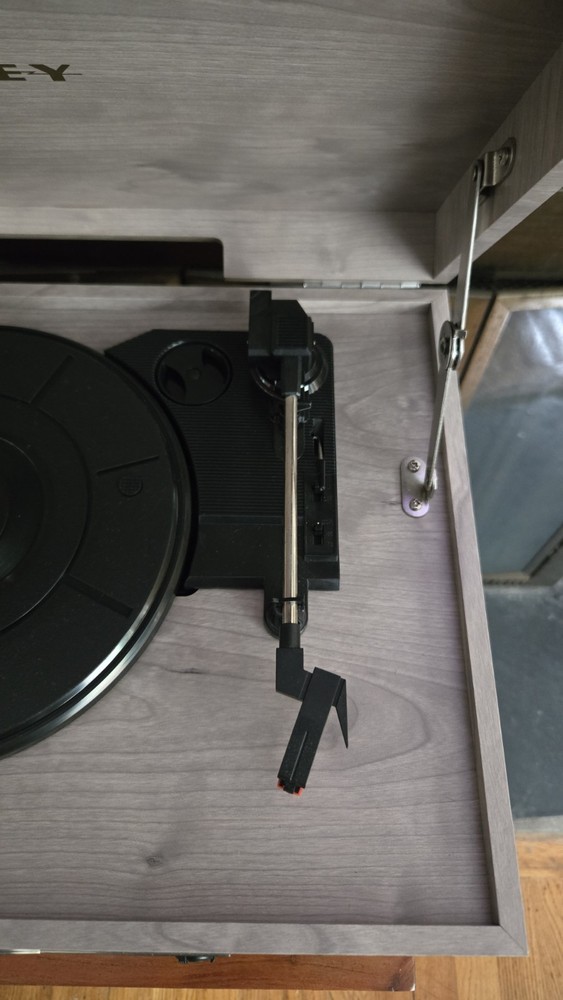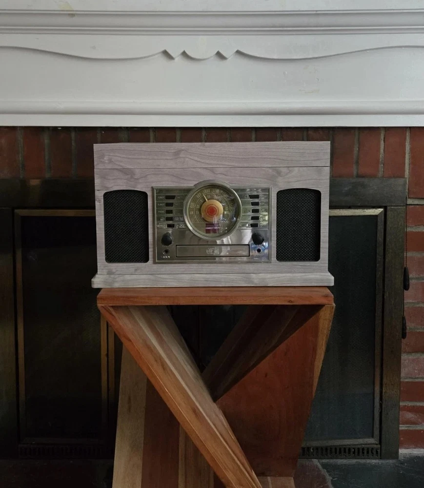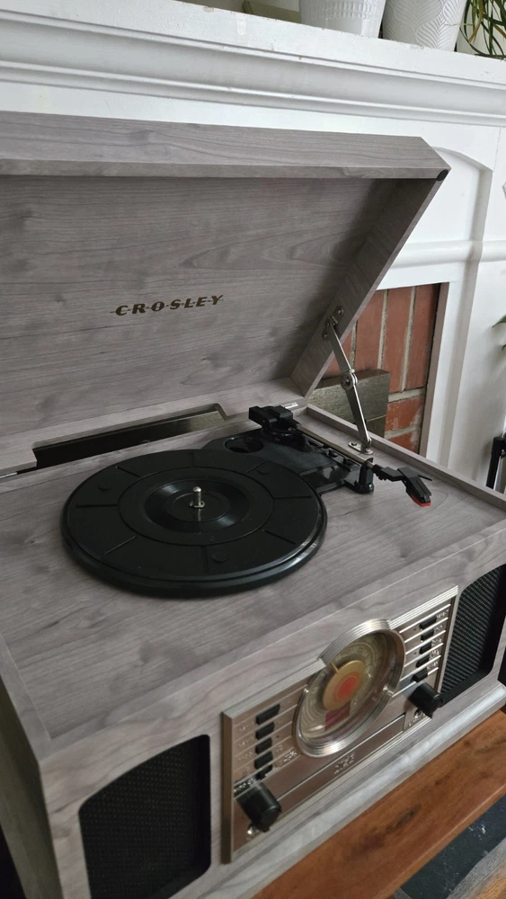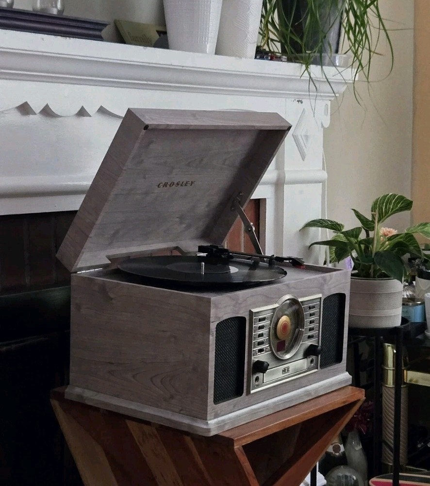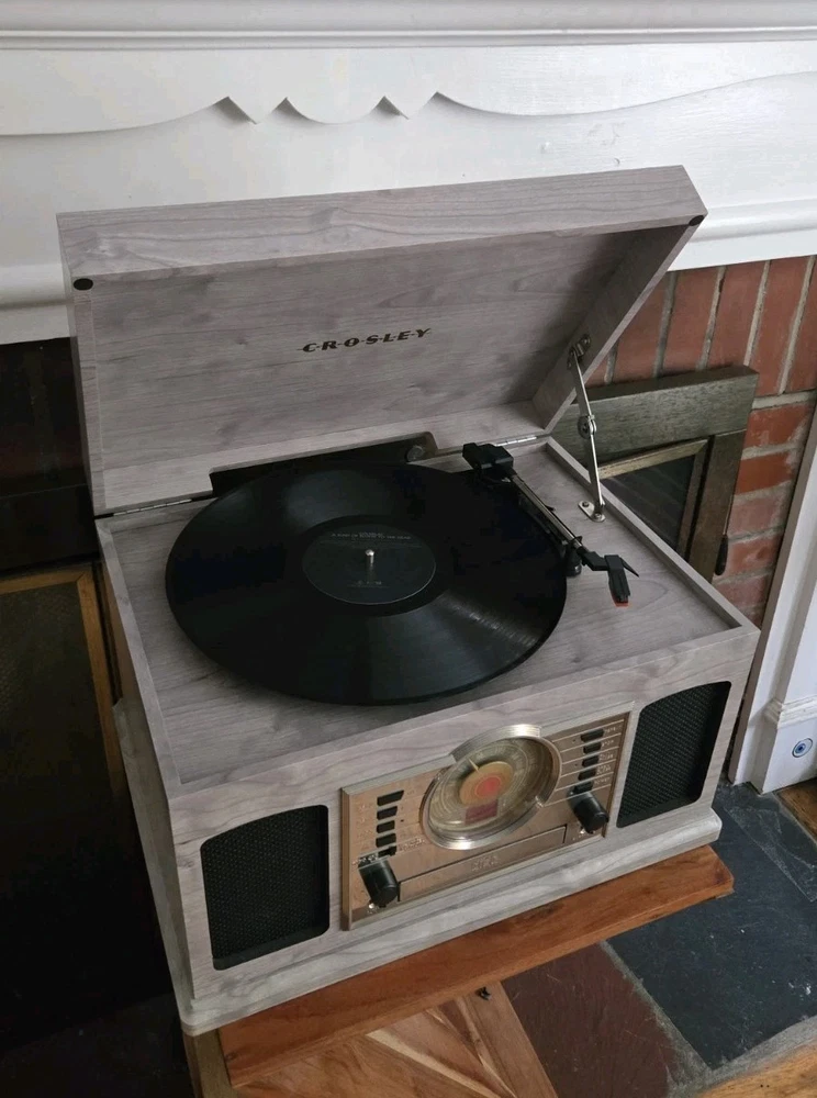 Great condition, 'like new' record player with versatile features, and a vintage aesthetic. All functions are working excellent, and there are no visible scratches or marks. The Crosley McQueen 8-in-1 is a versatile home audio component that combines a record player, CD player, cassette player, Bluetooth connectivity, and AM/FM radio all in one compact unit. With speed settings for both 45RPM and 33.3RPM, this 1st generation Crosley product provides a convenient and stylish solution for enjoying your favorite music in multiple formats.