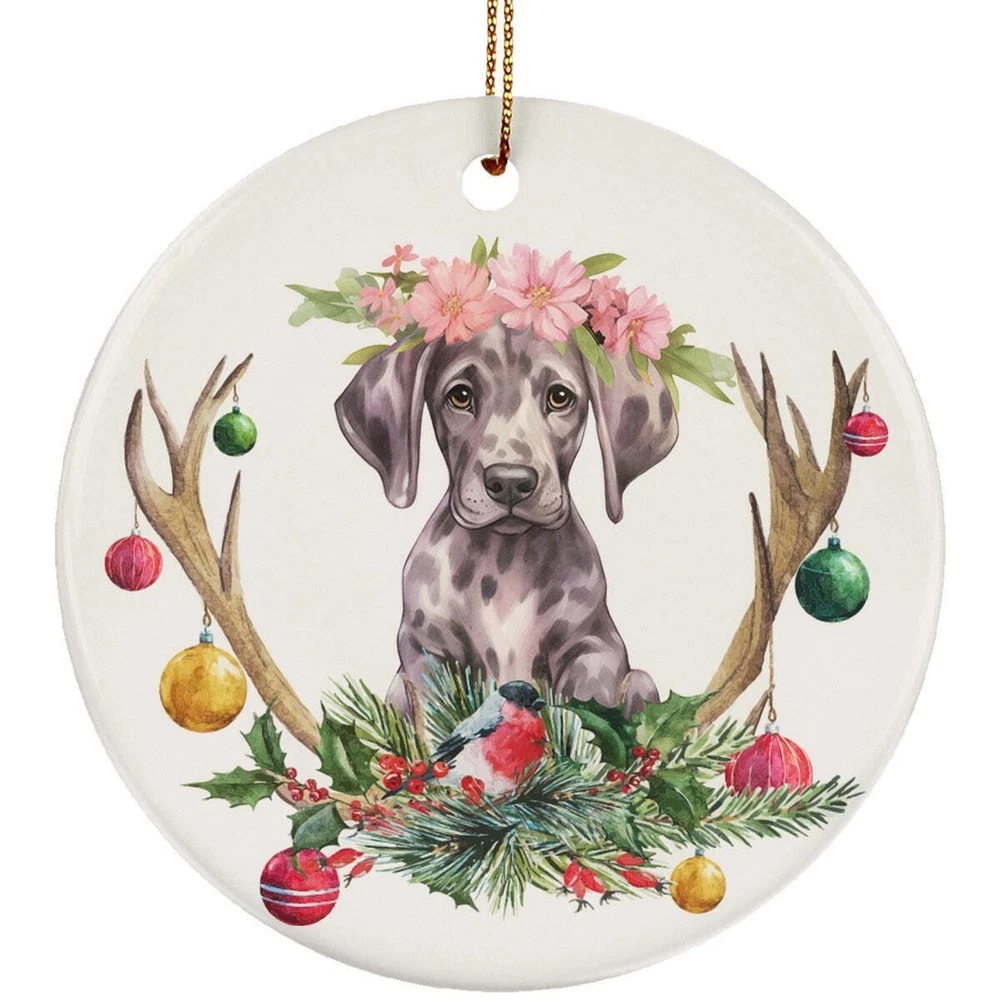Great Dane Puppy Dog Deer Anlters Christmas 2024 Ornament Ceramic Gift Decor