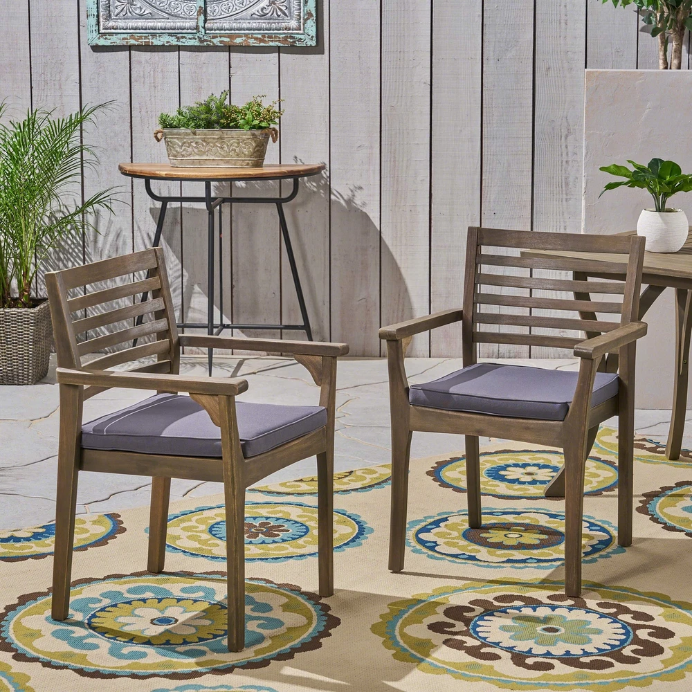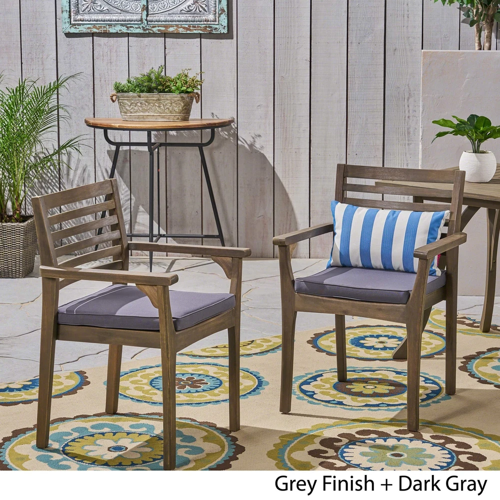 Great Deal Furniture Patio Dining Chairs, Acacia Wood and Outdoor Cushions, G...