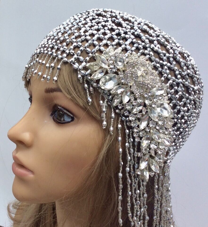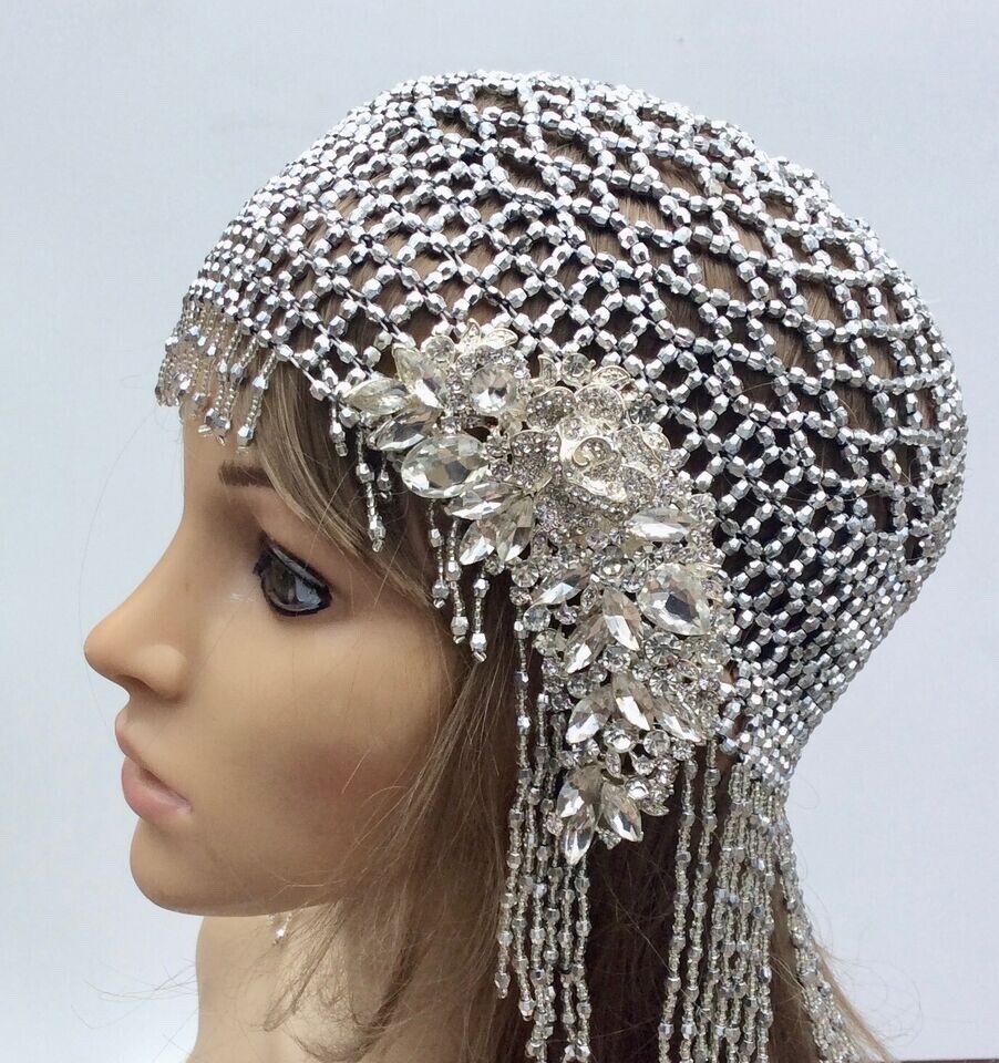 The Great Gatsby Art Deco Flapper 1920s Hat is a stylish and glamorous accessory for women who love the vintage elegance of the jazz era. This silver-colored bonnet-style hat has a classic and sophisticated look. One size fits all, making it a versatile piece that can complement a variety of outfits, perfect for adding a touch of sparkle to any ensemble. Ideal for women who appreciate the glamour and flair of the 1920s, this cloche hat exudes charm and elegance.
