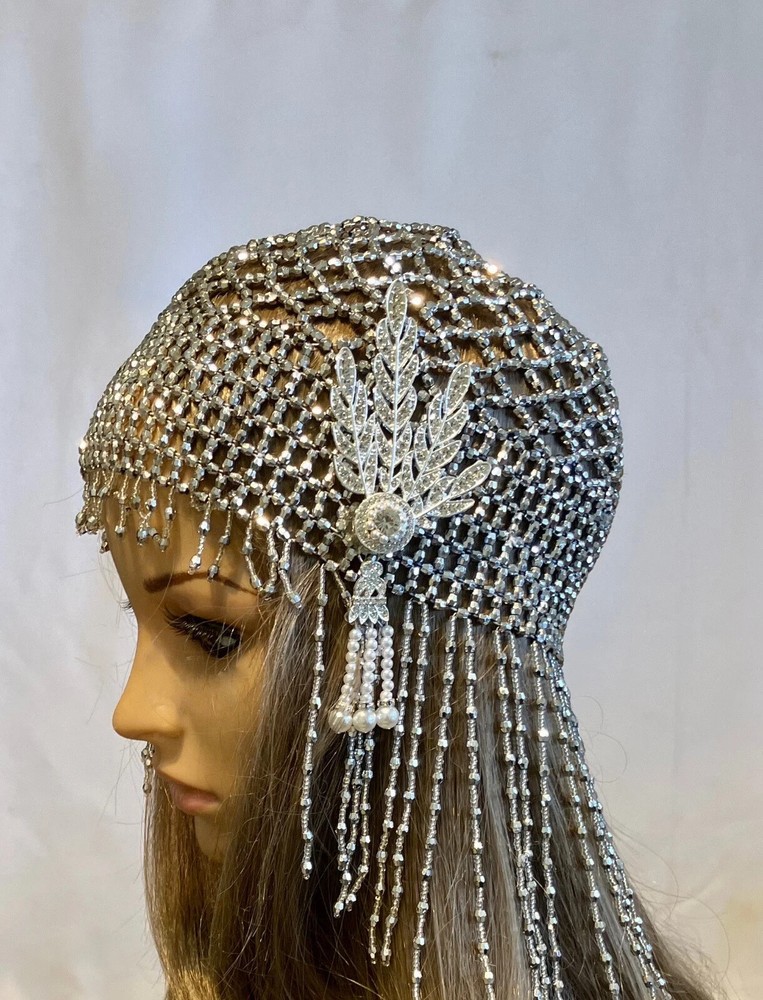 The Great Gatsby Art Deco Flapper 1920s Hat is a stylish and glamorous accessory for women who love the vintage elegance of the jazz era. This silver-colored bonnet-style hat has a classic and sophisticated look. One size fits all, making it a versatile piece that can complement a variety of outfits, perfect for adding a touch of sparkle to any ensemble. Ideal for women who appreciate the glamour and flair of the 1920s, this cloche hat exudes charm and elegance.