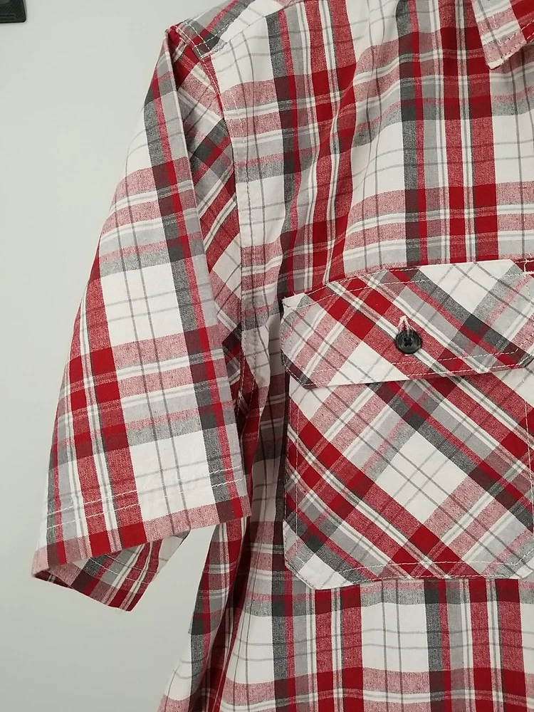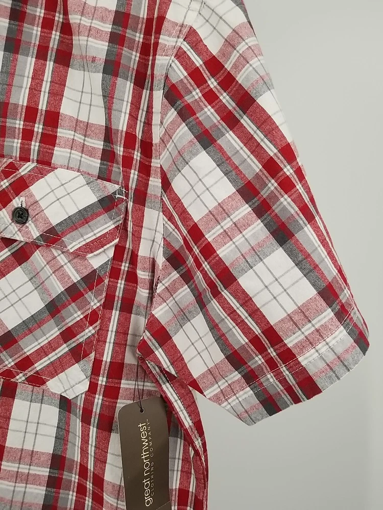 Introducing a stylish and comfortable Great Northwest button-up shirt for men! This shirt is perfect for any casual occasion. It comes in a multicolor plaid pattern, with short sleeves and a collared neckline. The shirt is made of high-quality cotton fabric that is machine washable, ensuring easy maintenance. The shirt also features pockets, making it practical for outdoor activities. It is available in size L, and its regular fit makes it suitable for all body types. This shirt is a great addition to your wardrobe, perfect for any season, and can be worn for any outdoor or indoor event. In new condition,see pics for details. May have washable mark on and/or by tag. Measurements are approximate. Top to bottom 32 inches Pit to pit 24 inches