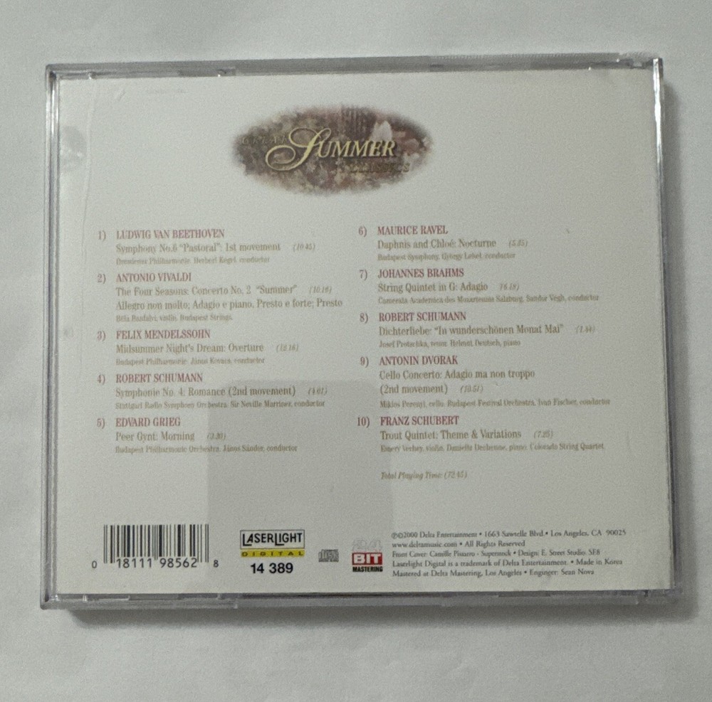 Enjoy the timeless melodies of the classical era with the Great Summer Classics CD. This audio CD features a collection of summertime favorites, perfect for relaxing by the beach or enjoying a picnic in the park. The jewel case ensures that your CD is well-protected and easy to store, while the no-modification description gives you peace of mind that the music is just as it was intended. This CD is a must-have for any classical music lover's collection, with its beautiful arrangements and stunning vocals. Made in the United States, this one-disc CD is a great addition to your music library. Get ready to be transported to a world of classical elegance with the Great Summer Classics CD.