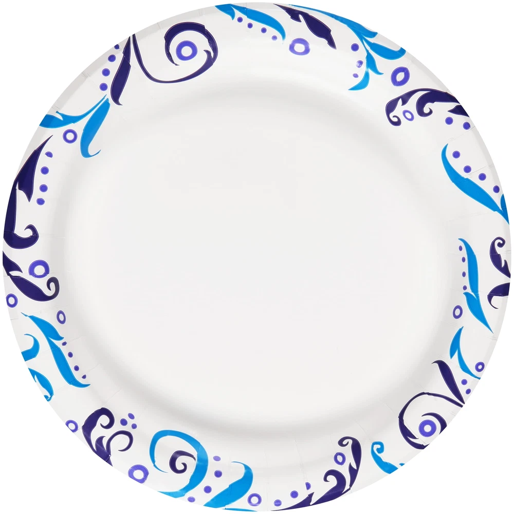 Serve food with ease using Everyday Paper Plates. They're perfect for everyday use or for special occasions. These round plates are extra-strong and soak proof. Use these plates at your next residential barbecue, birthday party, while you're watching the game, at your next pool party or any get together. They are suitable for barbecue dishes, snacks, dinner, lunch, desserts and more. They offer quick and easy disposal and clean-up for when the party is over. This package comes with 100 pleasantly decorated plates making it easy to stock up. These everyday plates are also microwave safe so you can easily re-heat food. Serve up your next meal with Everyday Paper Plates. products provide families with affordable, high quality grocery and household consumable options. With our wide range of product categories spanning grocery and household consumables, we offer you a variety of products for your family's needs. Our products are conveniently available online and in stores nationwide, allowing you to stock up and save money at the same time. Everyday Disposable Paper Plates, 8.5", 100 Count Strong and durable Soak proof Microwave safe Convenient way to serve meals or snacks Ideal for everyday use or special occasions like residential barbecues Makes clean up a breeze Round plates measure 8.5"