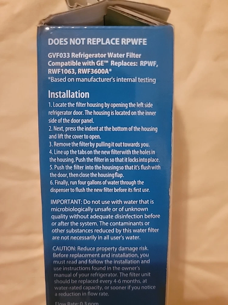 Type: Water Filter Compatible Model: GE RPWF Contaminant Removal: Chlorine Taste & Odor Model: GE RPWF Number in Pack: 1 Brand: Great Value
