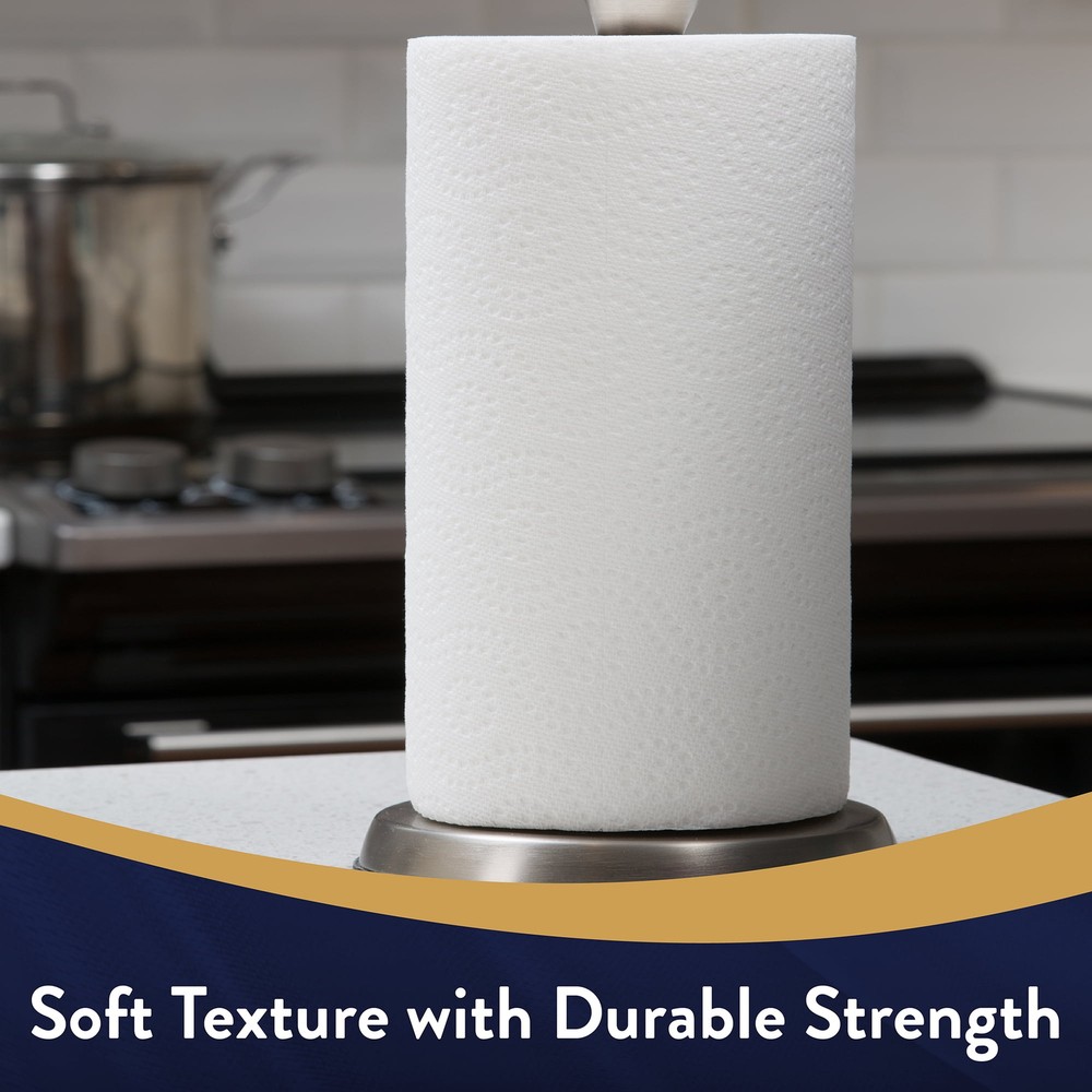 About this item Product details Great Value Ultra Strong Paper Towels feature premium 2-ply sheets that are super strong and absorbent making them the ideal paper towel for your home. Our towel has the right combination of soft texture with durable strength that you've been looking for. This pack contains six double rolls which gives you two times as many sheets as regular rolls, so you can tackle two times as many messes. The split sheets give you the option to choose the amount you need when cleaning up spills, dirt, grime, food waste, and more. The rolls are conveniently sized to easily fit in any kitchen, bathroom, workspace, etc. Each roll includes 165 sheets with a lovely embossed pattern. Experience the difference with Great Value Ultra Strong Paper Towels. Great Value products provide families with affordable, high-quality grocery and household consumable options. With our wide range of product categories spanning grocery and household consumables, we offer you a variety of products for your family's needs. Our products are conveniently available online and in Walmart stores nationwide, allowing you to stock up and save money at the same time. Great Value Ultra Strong Paper Towels, 6 Double Rolls 6 double rolls = 12 regular rolls* 110 split size sheets per roll Total area 297.46 sq ft (27.6 m^2) Each sheet 11 in x 5.9 in (27.9 cm X 14.9 cm) Our most absorbent paper towel Soft texture with durable strength Backed by the Great Value Guarantee *When compared to regular-size rolls with 55 sheets