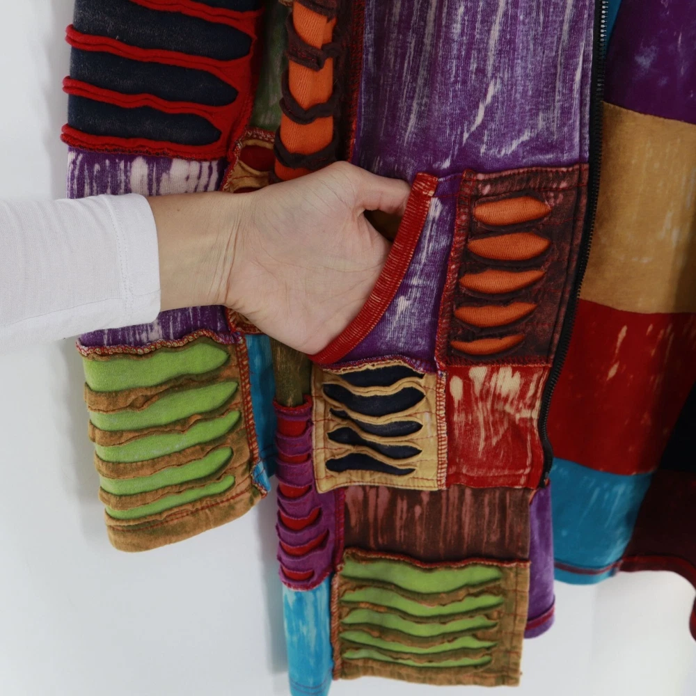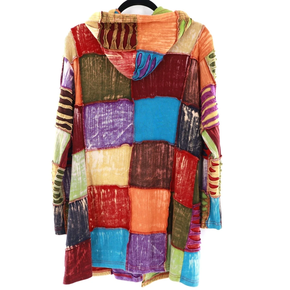 Greater Good Network Patchwork Jacket Womens S/M Hippie Coachella Festival Fall If you ever wanted to look like a walking quilt from the future, this is your moment. This patchwork masterpiece screams "I'm fun, funky, and ready to festival!" With its vibrant colors, it's like wearing a rainbow to Coachella without the unicorn. • Patchwork design • Full-length zipper • Two front pockets • Hooded style • Mid length • 100% cotton material Features: hippie, festival, outerwear, patchwork, tribal, coachella, burningman Size: Womens M Condition: Pre-Owned Good