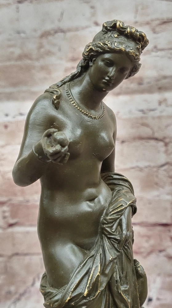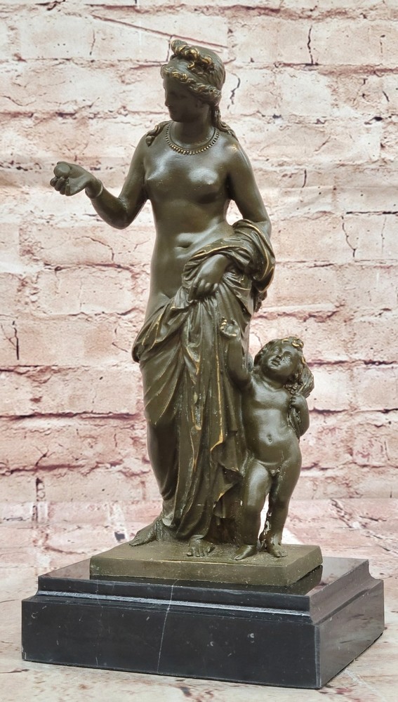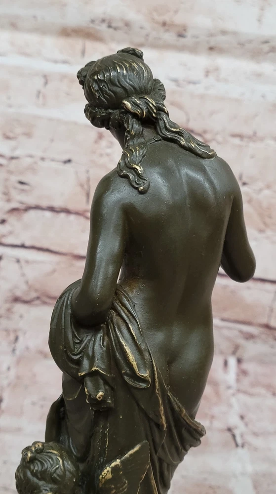 Greek Goddess Venus with Cupid Bronze Statue Sculpture Signed Classic Roman Figu Greek Goddess Venus with Cupid Bronze Statue Sculpture Signed Classic Roman Figu Condition : This sculpture is in perfect condition. Bronze Dimensions with Marble Base: Height 11" X Width 5.5" Marble Dimensions:5.5" X 4" Height without base:10" Weight:6 LBS Inventory:17GTS2076671 This elegant bronze sculpture captures the timeless beauty of Venus, the Roman goddess of love, accompanied by Cupid, her playful and mischievous son. Venus is portrayed with classical grace, her flowing form embodying both femininity and divine allure. Beside her, Cupid clings affectionately, adding charm and emotional depth to the composition. Handmade using the traditional lost wax method, this piece reflects exceptional craftsmanship and artistic sensitivity. The rich brown patina adds warmth and enhances the fine detailing in their hair, drapery, and expressions, bringing the mythological figures vividly to life. Signed by Jean Patoue, the sculpture is securely mounted on a polished black marble base, offering a striking contrast and a touch of sophistication. This captivating piece is perfect for lovers of classical mythology, fine art, or those looking to add a romantic and elegant focal point to their space. Signed Original Jean Patoue Venus with Cupid Bronze Sculpture Hand Made Video will open in a new window Using the eBay App? Paste link into a browser window: [isdntekvideo] Shipping Terms : Most of our items are shipped via USPS (United States Postal Service) mail or UPS. Most orders are shipped within 24-48 hours of purchase. Please be aware that not all items are available for USPS shipping due to size and weight. We do ship to Hawaii, Alaska, Canada, Puerto Rico, APO/AE, and U.S. Virgin Islands, however, an additional charge may be required. Please contact us before making any purchases in these areas. For Non-USA customers, you may be responsible for all duty, tax, brokerage fees that may be due upon delivery (shipping costs cover freight charges only). We also ship internationally. Please refer to the "Shipping and Handling" chart for the rates for each area. Payment : We accept just about any form of payment. PayPal, Master Card, Visa or American Express credit cards. Money orders, cashiers checks, and even personal or business checks. For governmental institutions, we will also accept a purchase order. Please understand that for personal or business checks we have to wait for the check to clear (usually 7 days) before shipping. Condition : New Detailed Hand Crafted Hot Cast Bronze Satisfaction Guaranteed. This is Stock Photo, Slight Color Variation!! Listing and template services provided by inkFrog