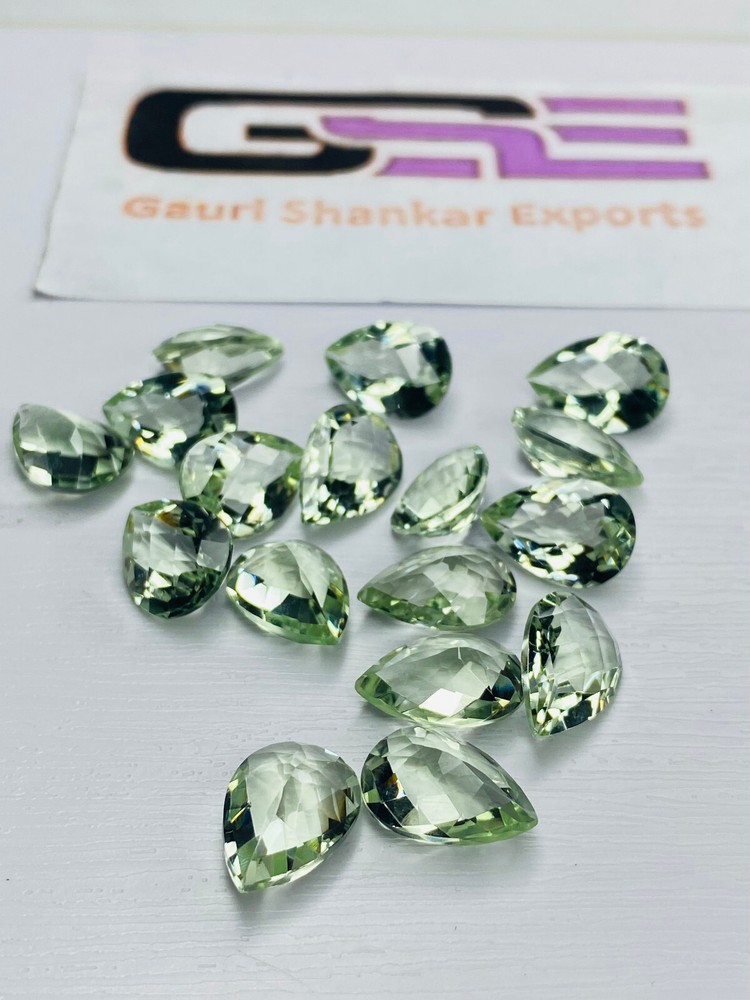 PRODUCT DETAILS Gemstone Name - Natural Green Amethyst Gemstone Colour -Green Gemstone Shape - Pear Checkerboard Cut (One Side Checkerboard Cut) Gemstone Cut - Loose Gemstone Gemstone Size Variation - 10x7 MM (1.65 Cts / 1 Pcs Lot) (3.30 Cts / 2 Pcs Lot) (8.25 Cts / 5 Pcs Lot) 11x8 MM (2.50 Cts / 1 Pcs Lot) 12x8 MM (2.60 Cts / 1 Pcs Lot) (5.20 Cts / 2 Pcs Lot) (13.00 Cts / 3 Pcs Lot) 14x10 MM (4.40 Cts / 1 Pcs Lot) (8.80 Cts / 2 Pcs Lot) - SHIPPING POLICY WORLDWIDE FREE SHIPPING HANDLING TIME: - 2 WORKING DAYS SHIPPING TIME: - 11 to 23 BUSINESS DAYS SHIPPING COMPANY: - INDIA POST NOTE: - IF BUYER HAVE ANY ISSUE REGARDING TO PRODUCT THAN CONTACT US DO NOT RASE ANY FEEDBACK BECAUSE YOUR FEEDBACK IS VALUABLE TO US PLEASE PROVIDE FULL SHIPPING DETAILS & MOBILE NUMBER BY EBAY MASSAGE IMMEDIATELY AFTER MAKING A PAYMENTFOR EASY DELIEVERY. ITEM WILL BE SHIPPED BY INDIA POST (DELIVERY TIME IS APPROX 11 to 23 WORKING DAYS AFTER DISPATCH). IF YOU WOULD LIKE PARCEL ON PRIORITY SHIPPING / EXPRESS SHIPPING FAST SHIPPING WHICH INCLUDE S A STRONG TRACKING NUMBER, PLEASE CONTACT US. THERE IS ADDITIONAL CHARGES TO UPGRADE SHIPPING CHOICE. WE WILL UPDATE THE TRACKING THE PARCEL AFTER DISPATCH. INTERNATIONAL BUYER PLEASES NOTE: - THE BUYER IS FULLY RESPONSIBLE FOR ANY CHARGES, IMPORT (CUSTOM) DUTIES AND TAXES IN BUYER’S COUNTRY. PAYMENT POLICY WE ACCEPT PAYMENT THROUGH PAYPAL ONLY; PAYMENT SHOULD BE MADE WITH IN TWO WORKING DAYS. RETURN POLICY RETURN SHOULD BE MADE WITHIN 30 DAYS OF THE DATE OF ITEM RECEIPT, ALL THE RETURN CHARGES AND OTHER DUTIES WILL BE PAID BY BUYER ONLY IN BUYER’S COUNTRY. YOUR SATISFACTION IS OUR AIM, WE ARE HERE AND STANDING BEGHIND OF OUR EVERY SELL. ! THANK YOU