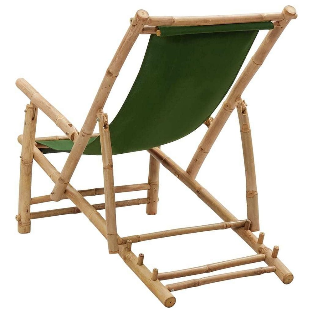 Size: Regular This Bamboo Deck Recliner Chair is the perfect sidekick for outdoor fun, bringing style and comfort to any patio, balcony, or garden. With its sleek texture and lovely green finish, it's not just good-looking but also a cozy spot for chilling out. Adjustable Backrest: Whether you're lounging in the sun or taking a quick nap, the adjustable backrest can be set to three different angles easily. It lets you find just the right spot for comfort, which really steps up your outdoor experience. Foldable Design: Perfect for those on the go, the foldable structure allows for compact storage and transport to places like the beach or camping. You can take this chair anywhere, making sure comfort is always close at hand, fitting nicely in your car or storage space. Robust Build: Made from sturdy bamboo and fade-resistant canvas, this chair is tough enough to handle the elements and meant to last. You won't have to stress about replacing it often, making it a smart choice for your outdoor gear. Minimalistic Aesthetic: With its clean lines and smooth textures, this recliner looks fab in any outdoor setting. Its simple design fits right into any decor, adding a hint of sophistication to your space. Easy Maintenance: Keeping this chair looking good is simple; it doesn't need much cleaning, and its fade-resistant materials keep it looking fresh season after season. Regular care includes using a cover when it's not in use to help it last even longer. Color: Green Shape: Rectangular Material: Fabric Bamboo Fiber Finish: Matte Indoor/Outdoor: Outdoor Only Cover Included: No Room: Garden and terrace Capacity: 1 Person Maximum Number of People: 1 Dimensions: 41.7 x 23.6 x 35.4 in (W x L x H) Min-Max Dimensions: 12.6-13.4 Leg Height: 12.6 in Weight: 16.53 lbs Seat Depth: 23.6 in Seating Capacity: 1 Swings: No Delivery Contains: 1 x Bamboo Deck Chair Assembly Required: Yes Recommended Number of People for Assembly: 1