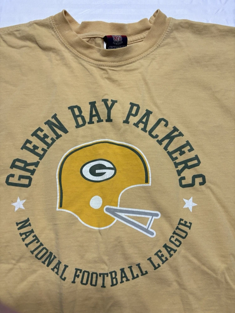 Reebok Green Bay Packers Shirt Adult Large Yellow Graphic Logo NFL Football Sports Mens gridiron classic. Pre owned shipped with usps ground advantage.