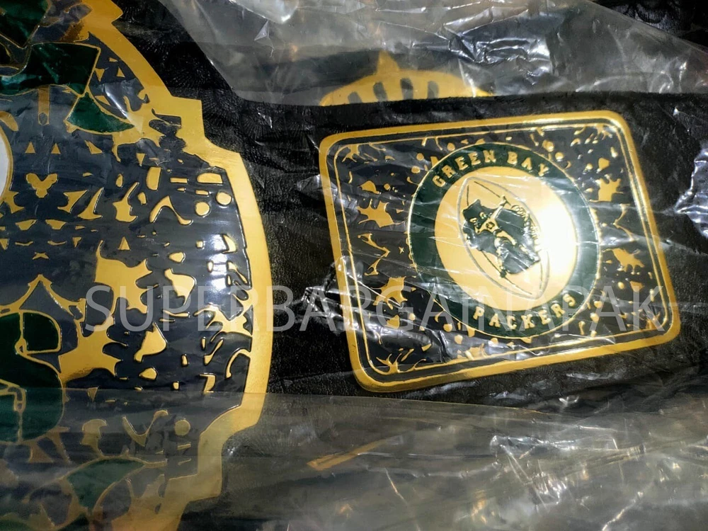 Welcome to our shop ------------------------------------------- We are specialist in manufacturing handmade products:: Our wide range of products include: >>>>Championship Belts WWE | WWF | AEW | UFC | WBC | WCW Product Description ** Green Bay Packers championship belt *** Plate Metal: Brass (Zinc available on request with additional cost) Strap: 100% Leather Largest Waist Size: Fits upto 46'' Belt Length: ~50" Weight: 6.17 lbs | 2.81 Kg Plate Thickness: 2mm (4mm Version available on demand with additional cost) ::The belt is well crafted and manufactured to meet the quality demands of fans:: Get your hands on this marvelous piece now! Note: If you need further details kindly inbox us, we will try to be as responsive as possible. ------------------------------------------- Return Policy: Generally we don't have much complains on our products and we make sure to 100% satisfy our clients. We send the product in well Bubble Wrapped packaging so there is highly unlike chance of getting damaged item. In case there is a damage, we will try to give partial refund or you can ask for full refund within 30 days after returning the belt to origin. NOTE: 1. If you have placed the order by mistake or you have purchased a wrong item then we are not going to refund that. 2. Buyer will pay the shipping fee of returning the belt. ------------------------------------------- Happy Shopping! :)