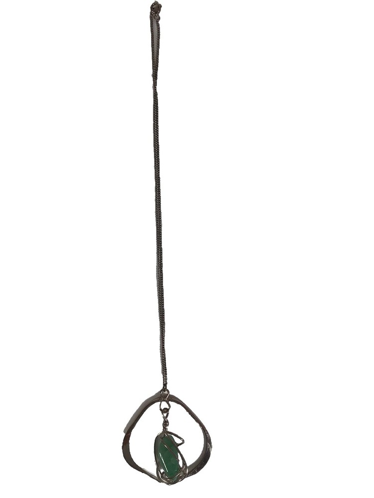 The product is a necklace with green/blue stone beads, set in silver tone. It has a length of 11 inches. The main stone color is green/blue, and the material is stone.