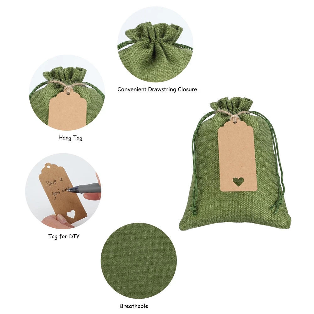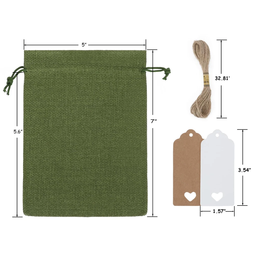 Complete Burlap Bags Set: Each set includes 30 durable 5x7 inch burlap bags, Comes with 15 white tags and 15 craft tags for customizable labeling, along with 32.8 feet of string for tying or hanging. Everything you need to create charming, rustic packaging. Premium Material: These bags are made of high-quality burlap, these bags are reusable, making them an eco-conscious option for various purposes, an alternative to disposable gift wraps and plastic bags. Convenient Drawstring Closure: Each bag features a strong drawstring closure, keeping your items secure and easy to access. Especially for small business owners, this is a time-saving way to package. Ideal for Different Items Storage: The size of these bags is perfect for packing, candy, treats, candles, soaps, toys, handmade goods, seeds, aromatherapy bags, and so on. Combining versatile and practical. Great for Any Occasion: Perfect for rustic weddings, baby showers, birthday parties, or church events, these bags can be used for table decorations, gift packaging, or as unique containers for party favors. Making the event impress your special guests.