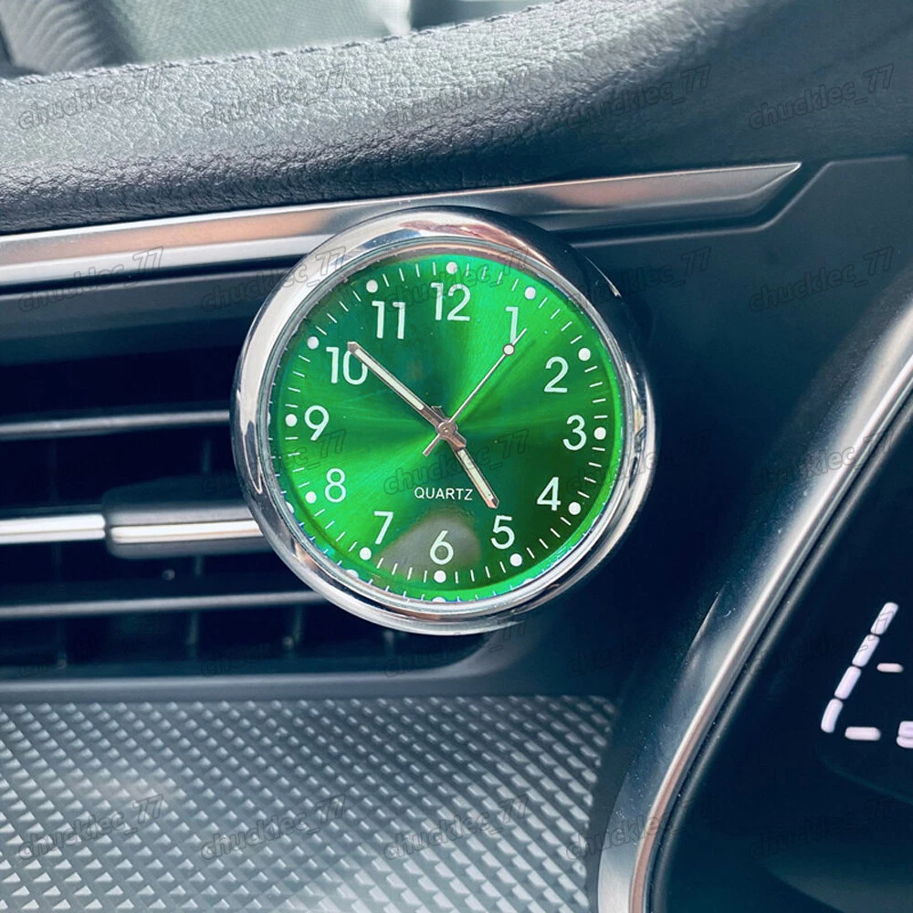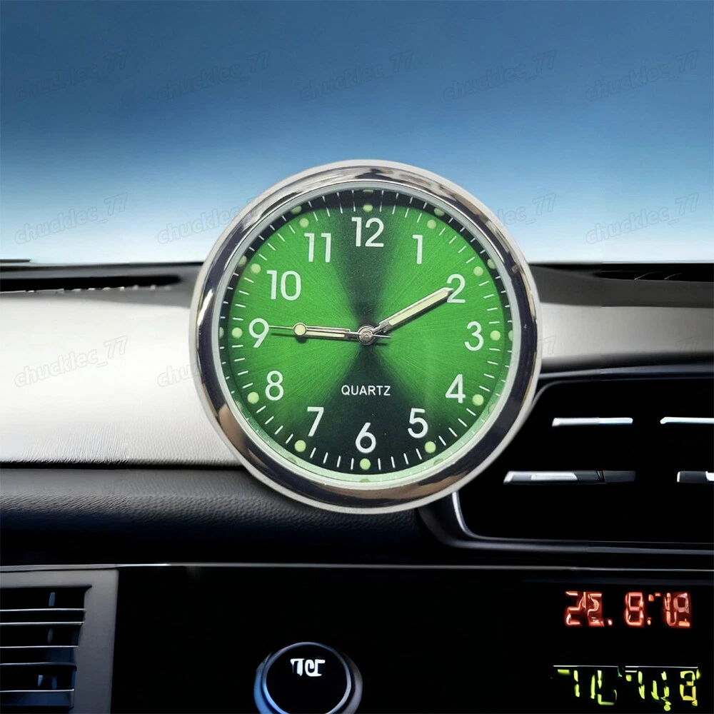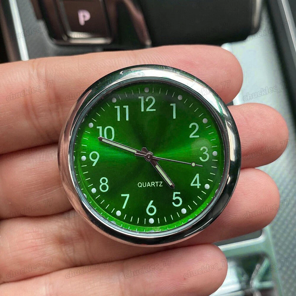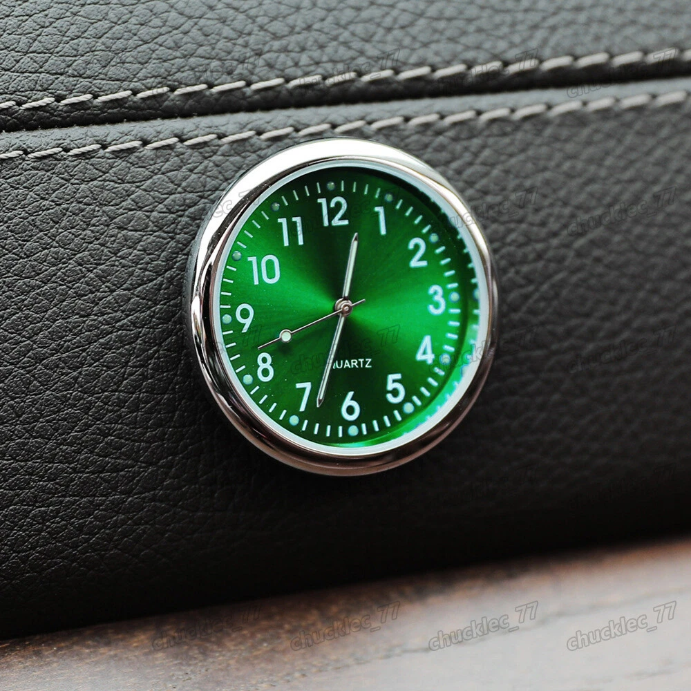 Green Car Clock Mini Luminous Quartz Analog Watch Stick-On Clock Accessories
