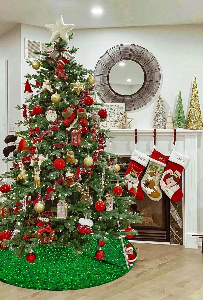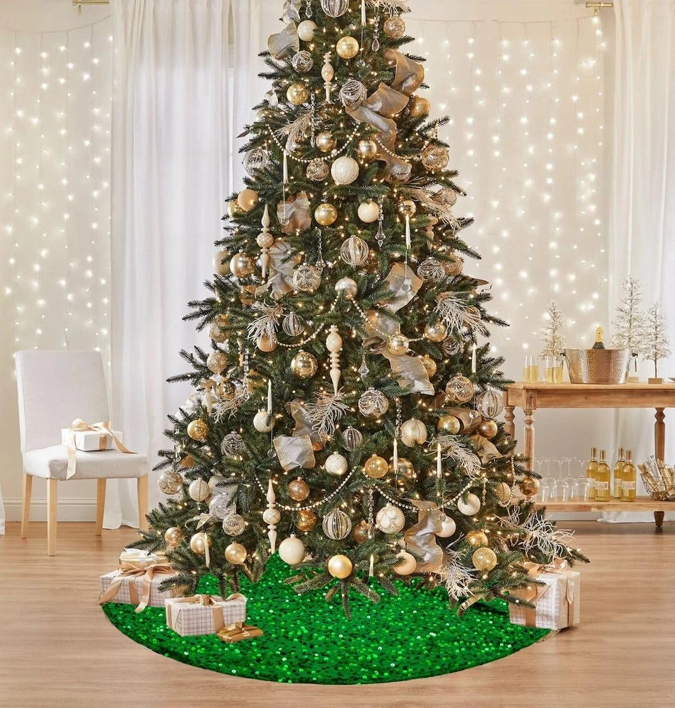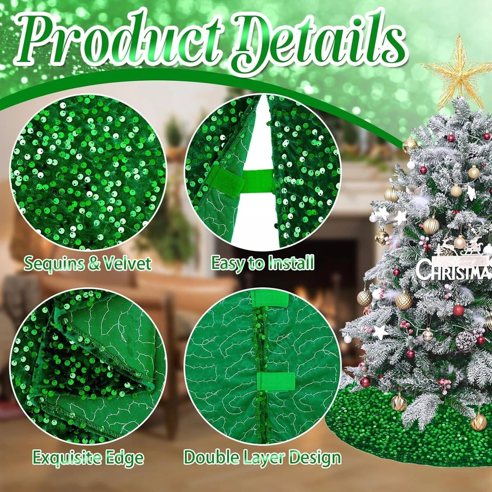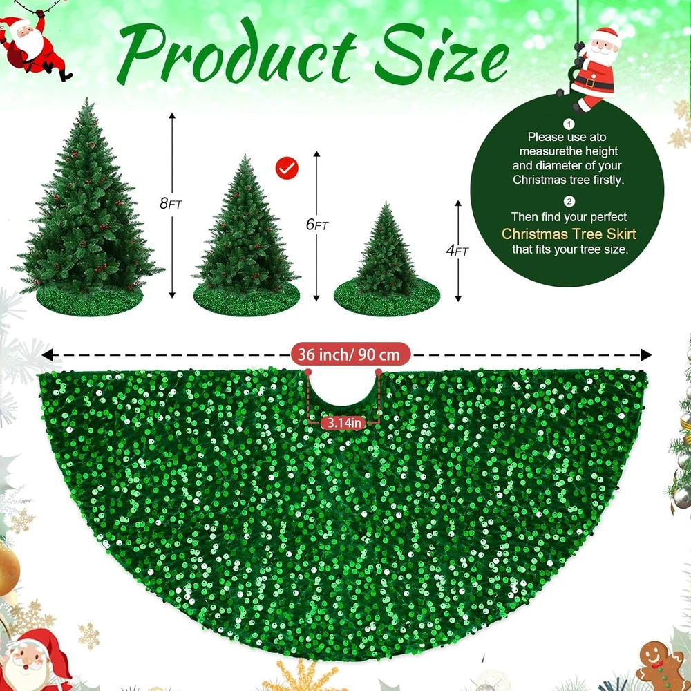 Green Christmas Tree Skirt 36 Inch Glitter Xmas Tree Cover Soft Velvet Fabric for 6 Tree New Year Party Christmas Tree Mat 【Christmas Tree Skirt Size】: Green tree skirt outer diameter is 36 inch, Perfect for small tree skirt decoration, you can place christmas gifts, decorations on the tree skirt. 【Sparkly Tree Skirt】: This tree skirt is double-layered design, Xmas tree mat is made of quality sequins and velvet. The soft velvet fabric is embroidered with sparkle sequins. This sequin velvet tree skirt has exquisite craftsmanship and thick enough. 【Easy to Install】: This christmas skirt tree with magic stickers design. Easy to install fits quickly, no need to tie, easy to decorate your Christmas tree. Reusable christmas tree decor. 【Widely Use Christmas Tree decor】: The tree skirt has long-lasting durability.Perfect for Homes, Offices, Party, Schools, Shops, Garden, Bar, Hotel, Outdoor, shopping mall, etc.Make a wonderful decorations for your Christmas.