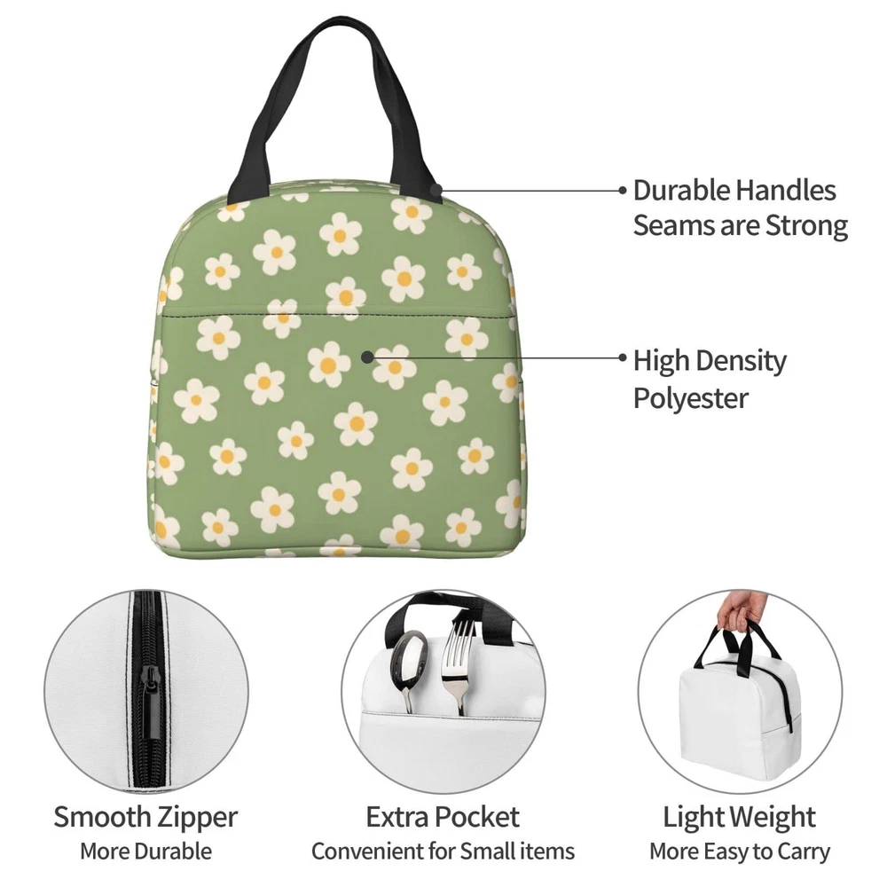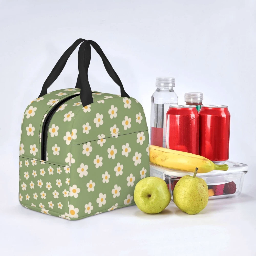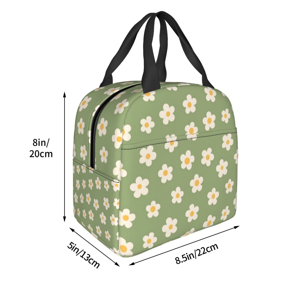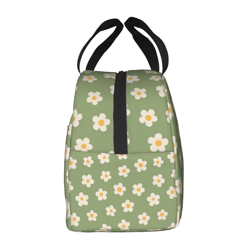 Green Daisy Insulated Lunch Bag Reusable Cooler Tote for Work Travel