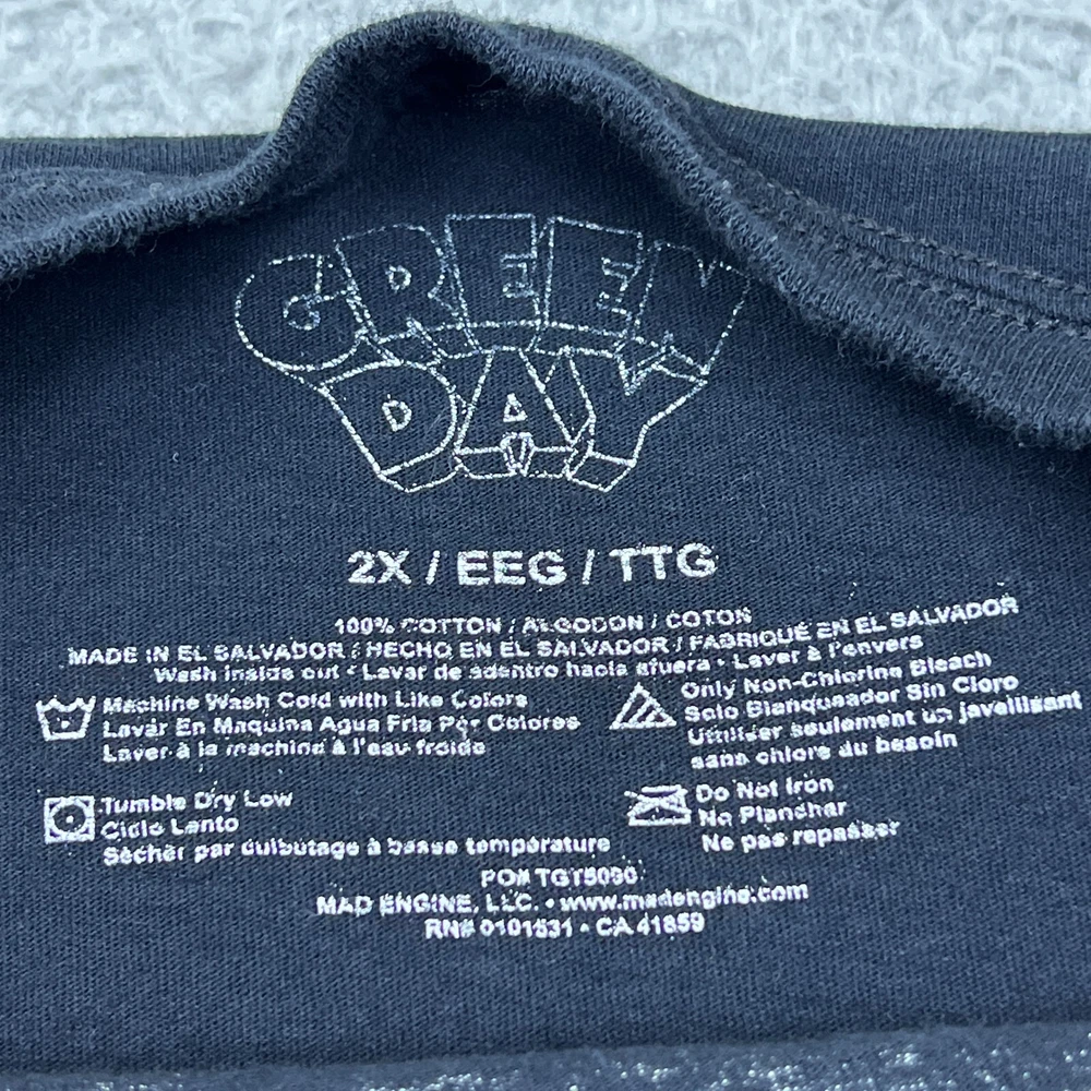 Vintage: No Type: T-Shirt Garment Care: Machine Washable Sleeve Length: Short Sleeve Fabric Type: Cotton Personalize: No MPN: Does Not Apply Size: 2XL Brand: Green Day Size Type: Regular Character: Green Day Handmade: No Pattern: Solid Product Line: Mad Engine Color: Black Theme: 80s, 90s, American, Animals, City, Classic, Dad, Music, Punk, Sports Features: All Seasons, Breathable, Double-Sided, Easy Care, Lightweight, Oversized, Packable, Stretch, Unlined Year Manufactured: 2010-2019 Seller Notes: “Good used condition with light wear” Accents: Logo Neckline: Crew Neck Department: Men Country/Region of Manufacture: El Salvador Material: Cotton, Cotton Blend, Polyester Blend Character Family: Green Day Graphic Print: Yes Fit: Regular Model: Green Day Season: Fall, Spring, Summer, Winter