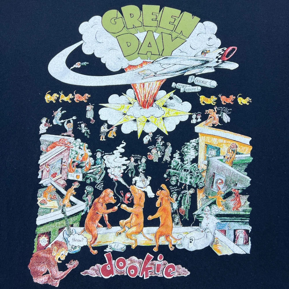 Green Day Dookie Album Black T-Shirt 2XL Crew Alternative Punk Music Dog Cops
