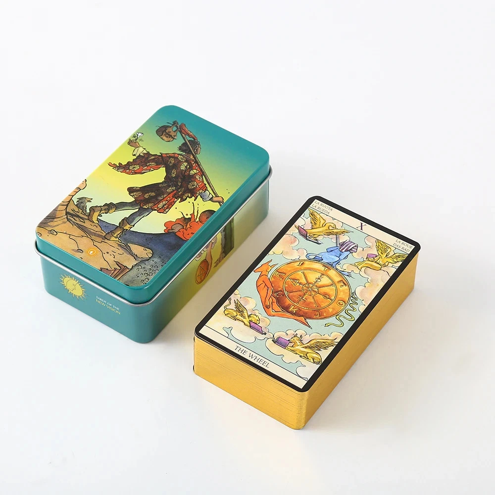 Size:10cm*6cm Material: oracle card high-quality black core paper tarocca high-quality copper sheet paper Process: fine sandpaper is used for polishing, which takes a long time to polish. The gold foil paper looks smooth. The previous stamping process has been improved by at least 2 grades.
