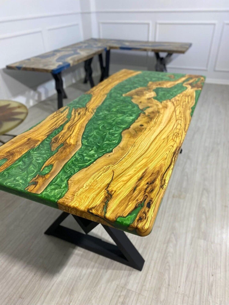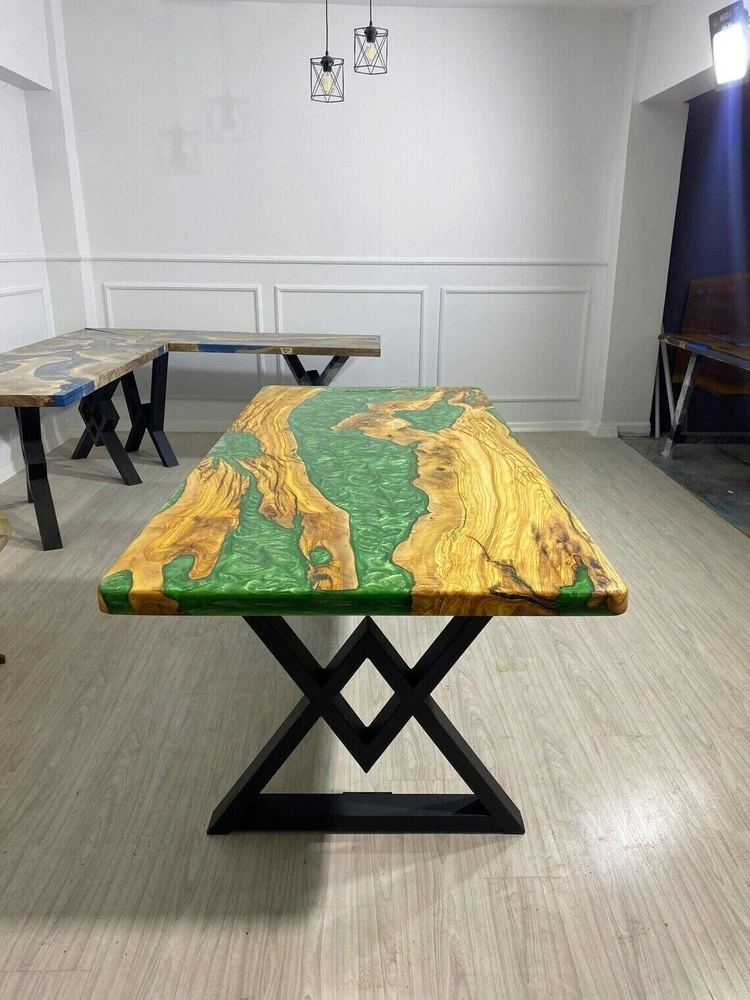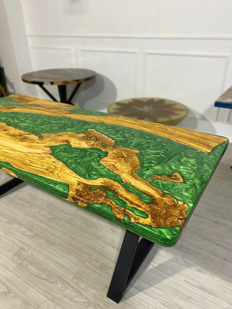 Green Epoxy Live Edge Wooden Dining Table Top Christmas Eve Sale Furniture Decor