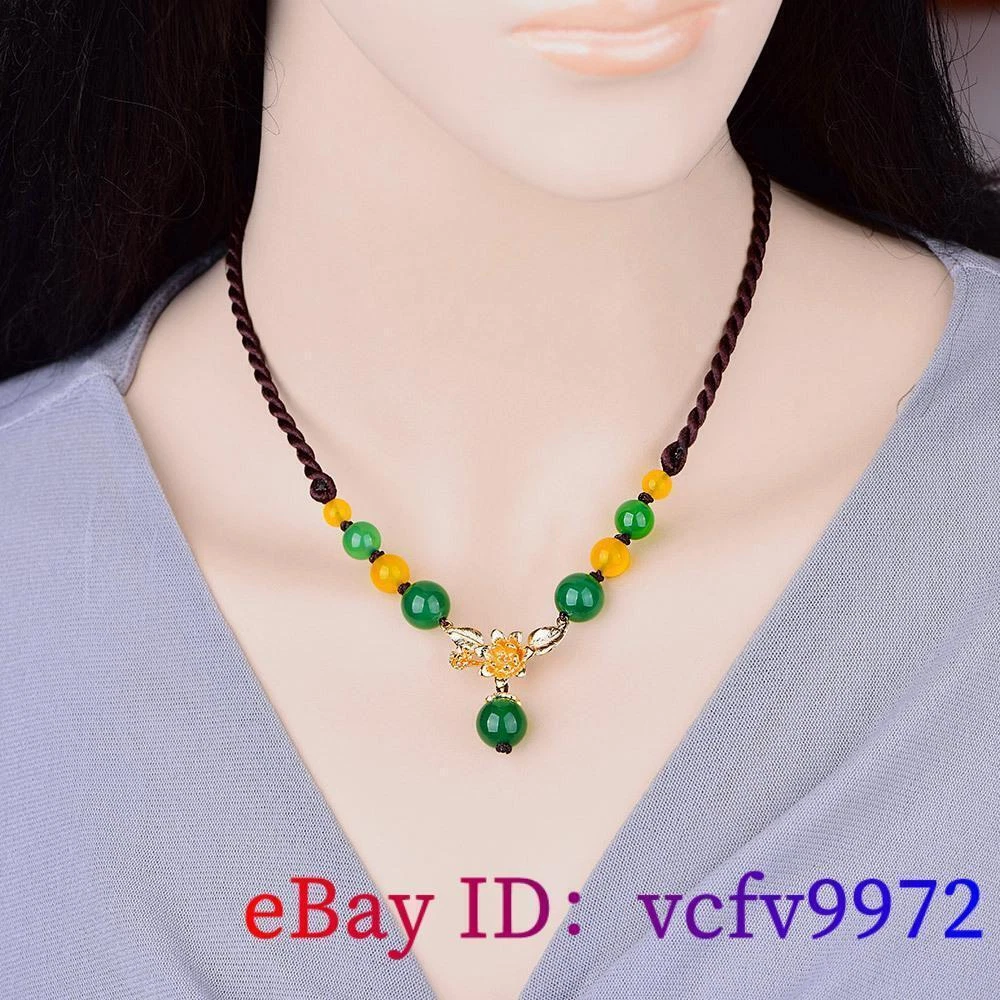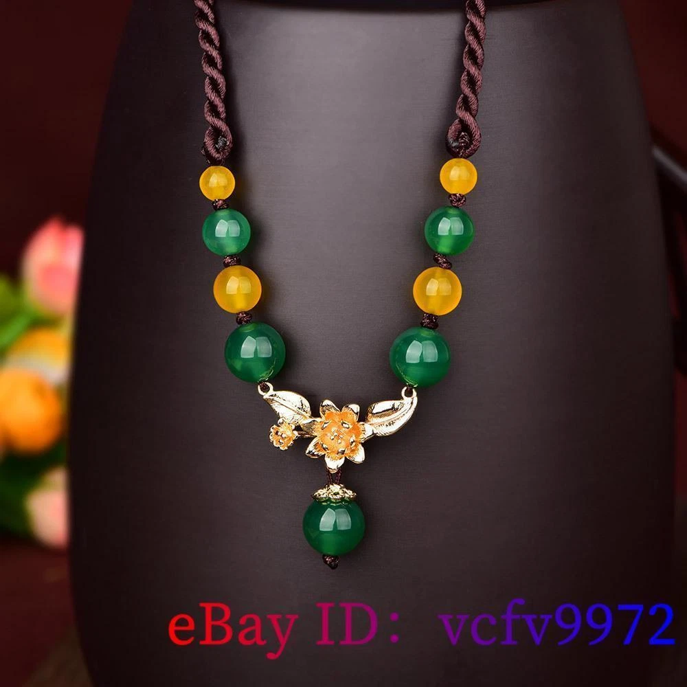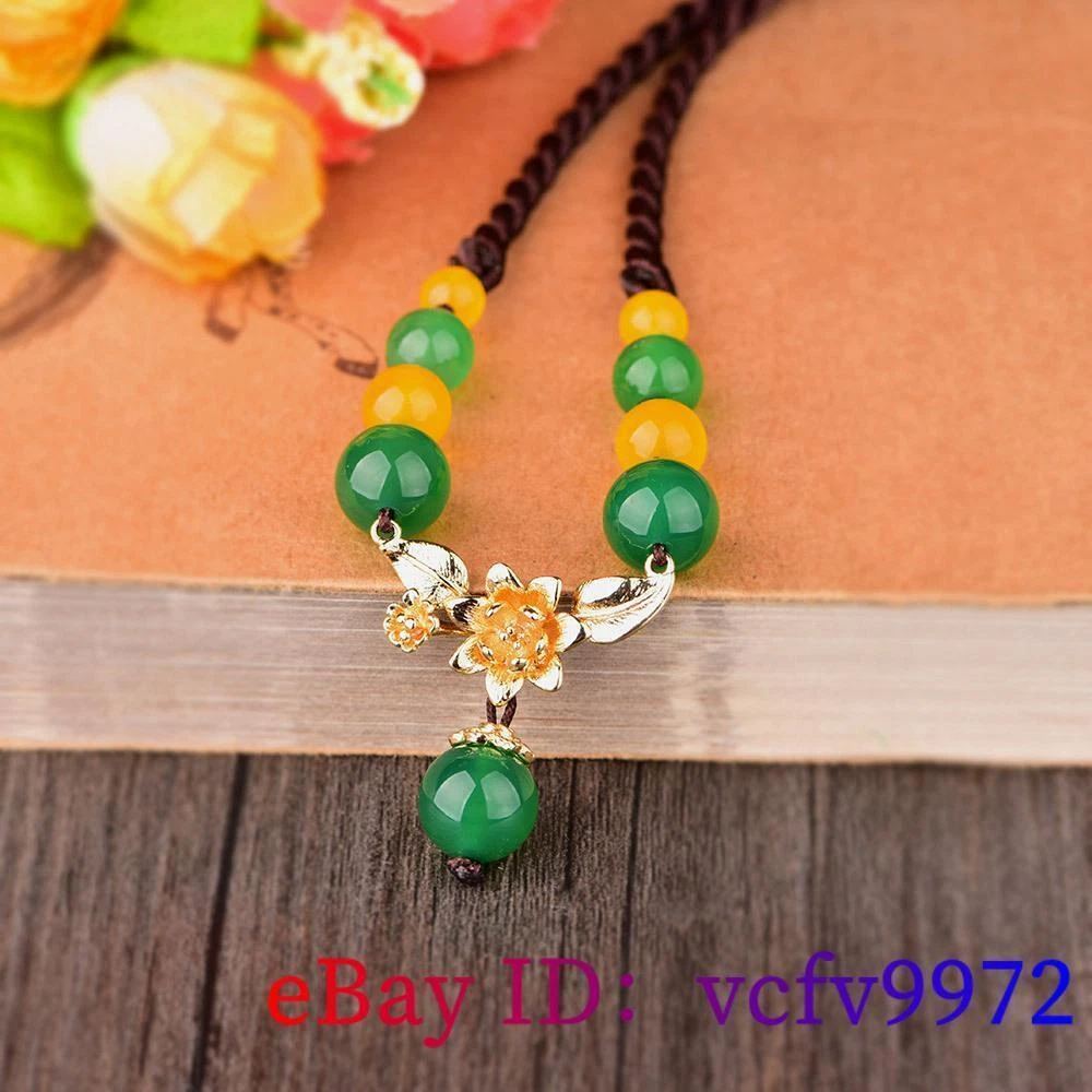Green Jade Flower Necklace Amulet Natural Jewelry Pendant 925 Silver